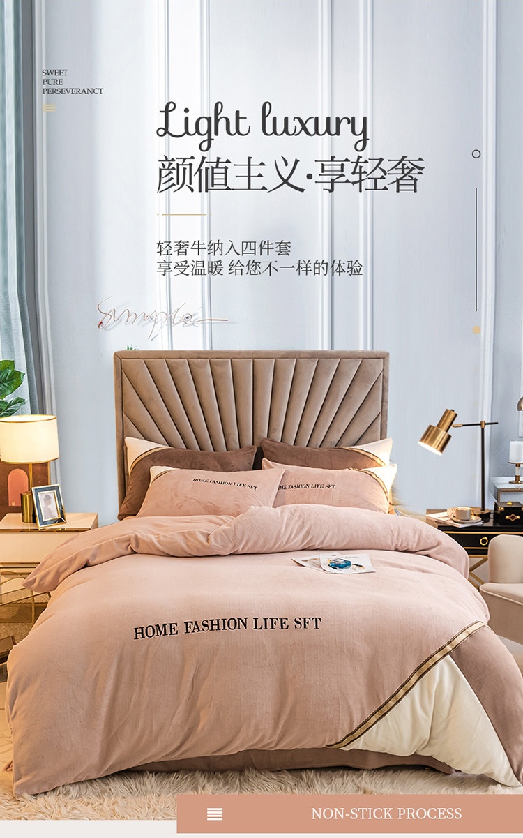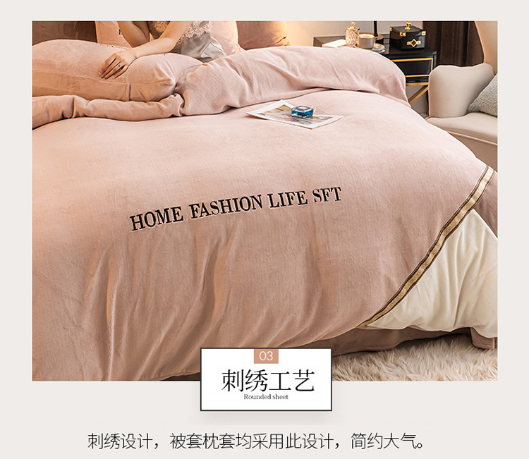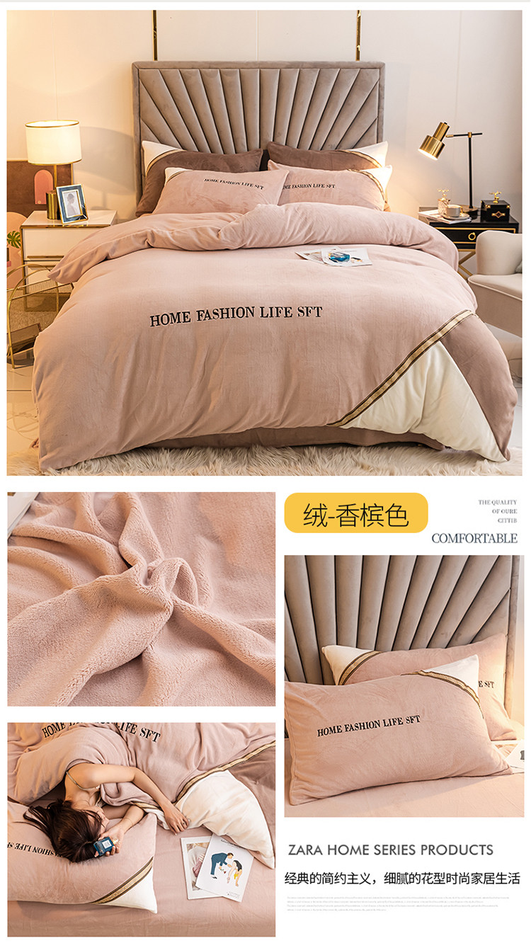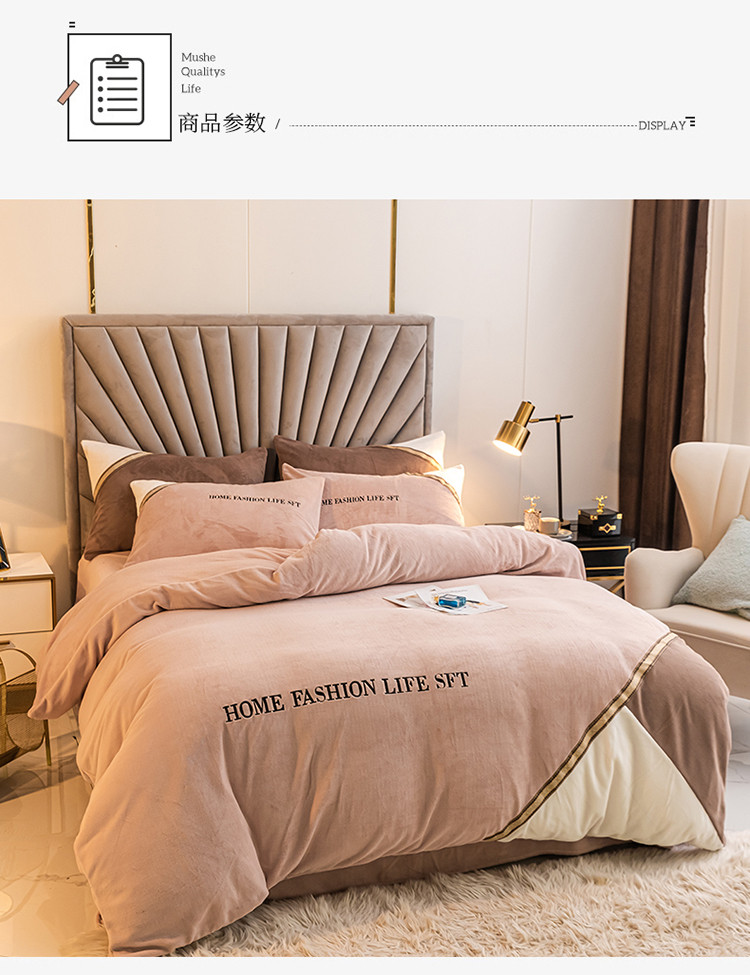 索飞特 2022新款牛奶绒拼角工艺款四件套 绒-香槟色