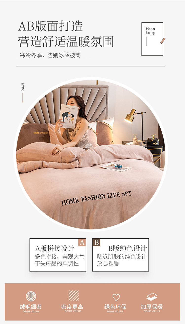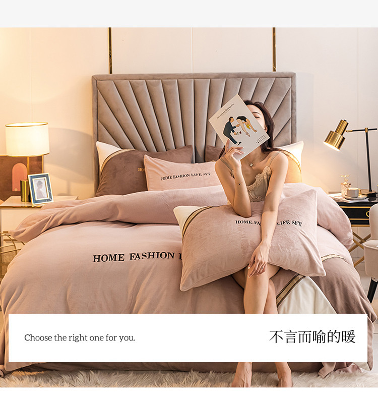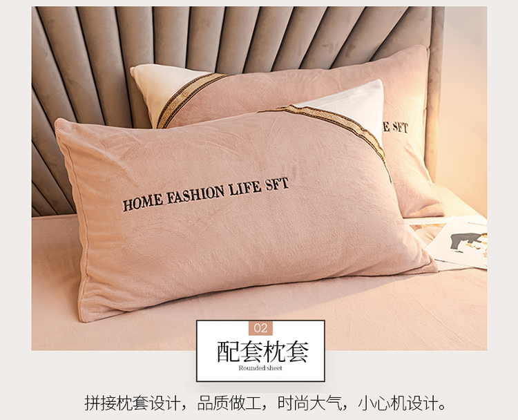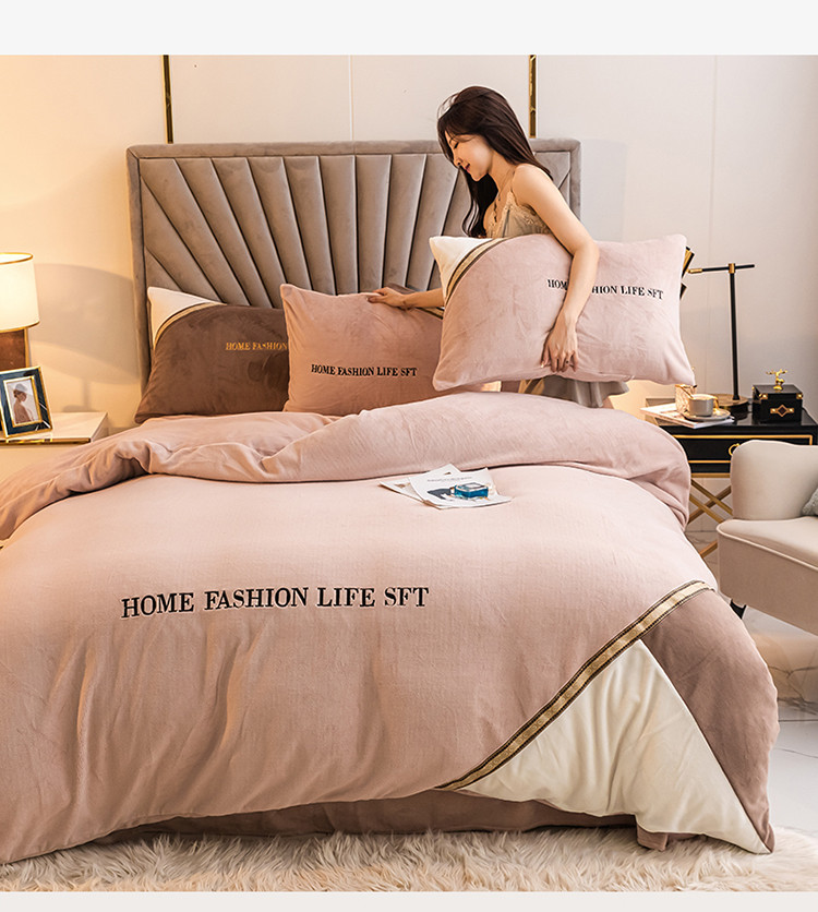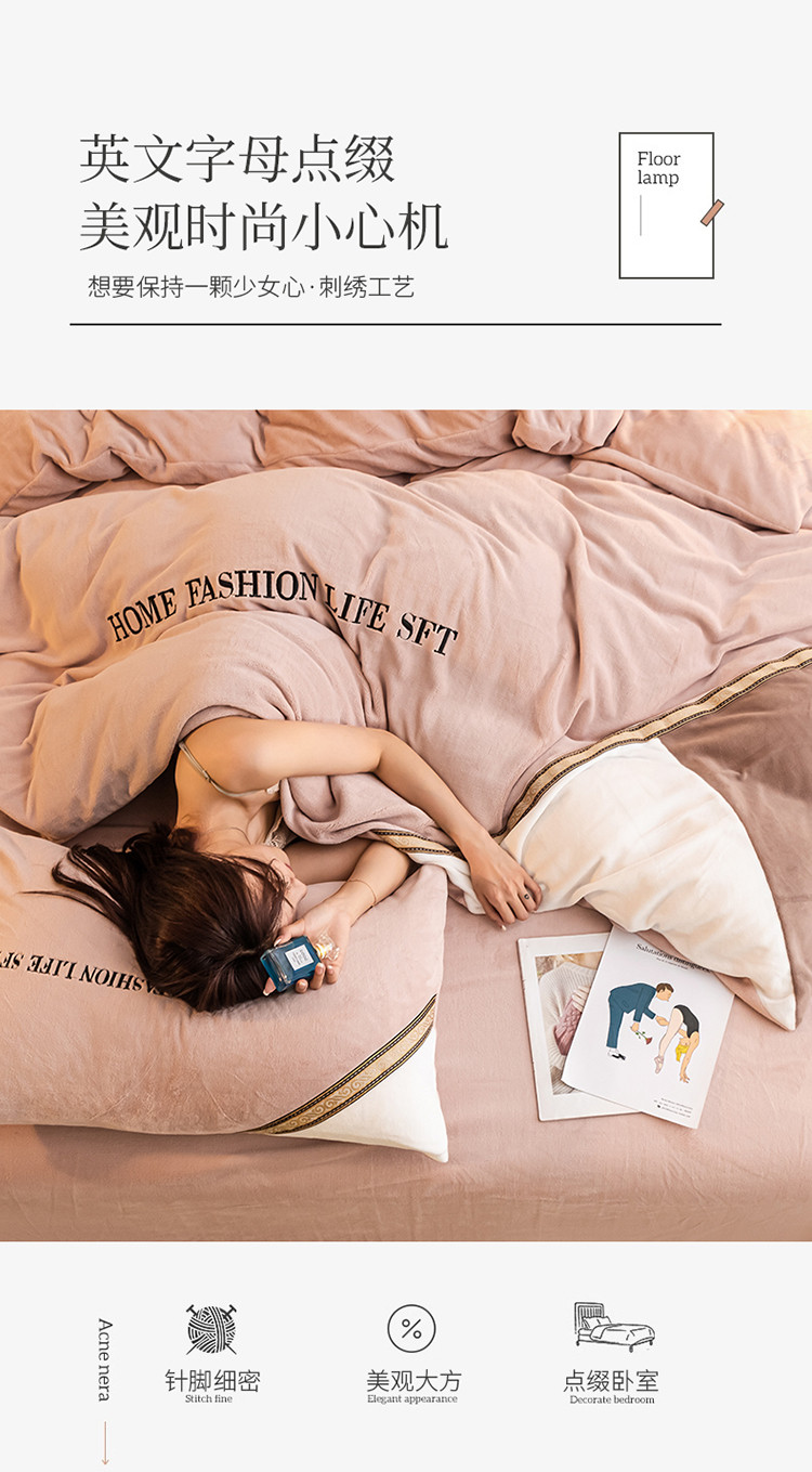 索飞特 2022新款牛奶绒拼角工艺款四件套 绒-香槟色