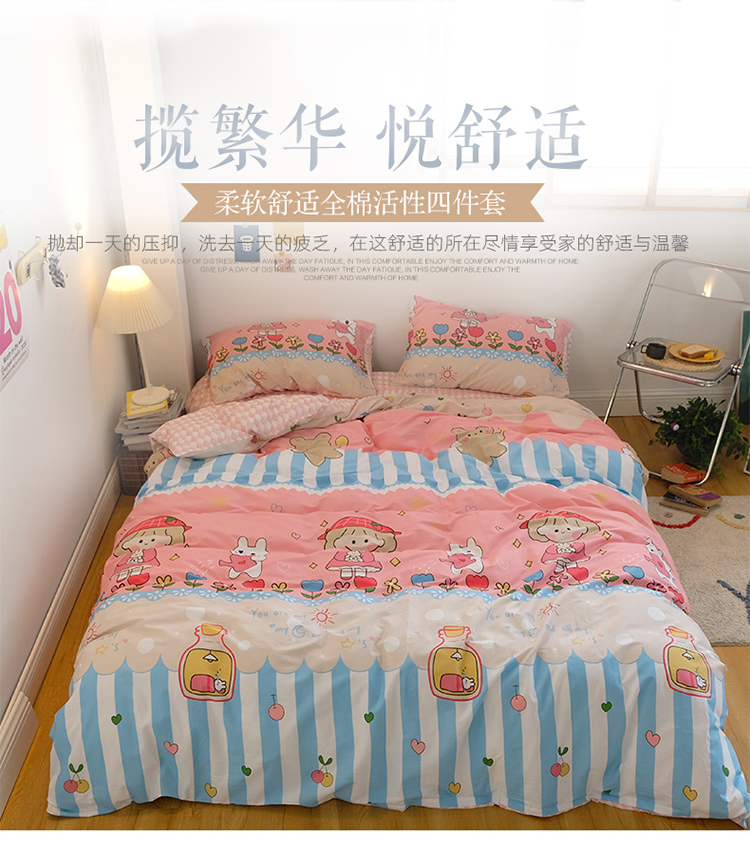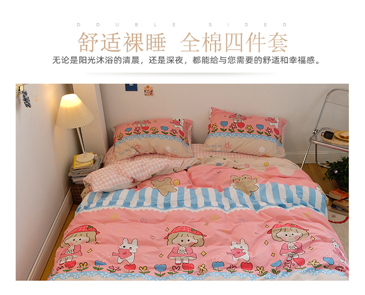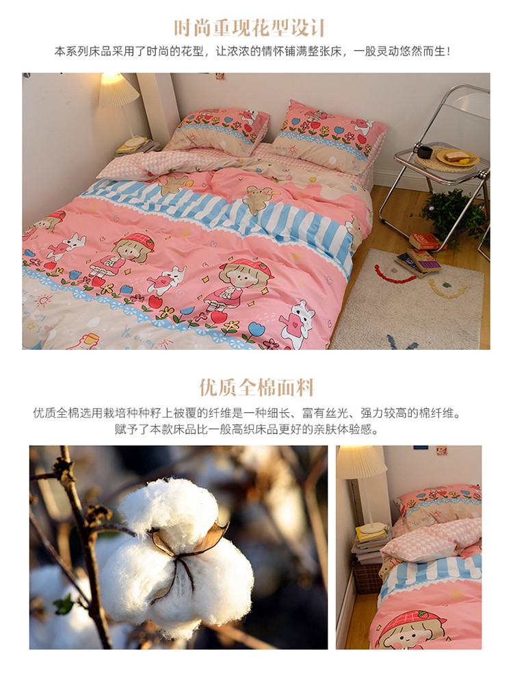 (总)窝米 2020春夏新品全棉13372四件套小波西风系列,草莓酱,木槿,小花花,小尤里