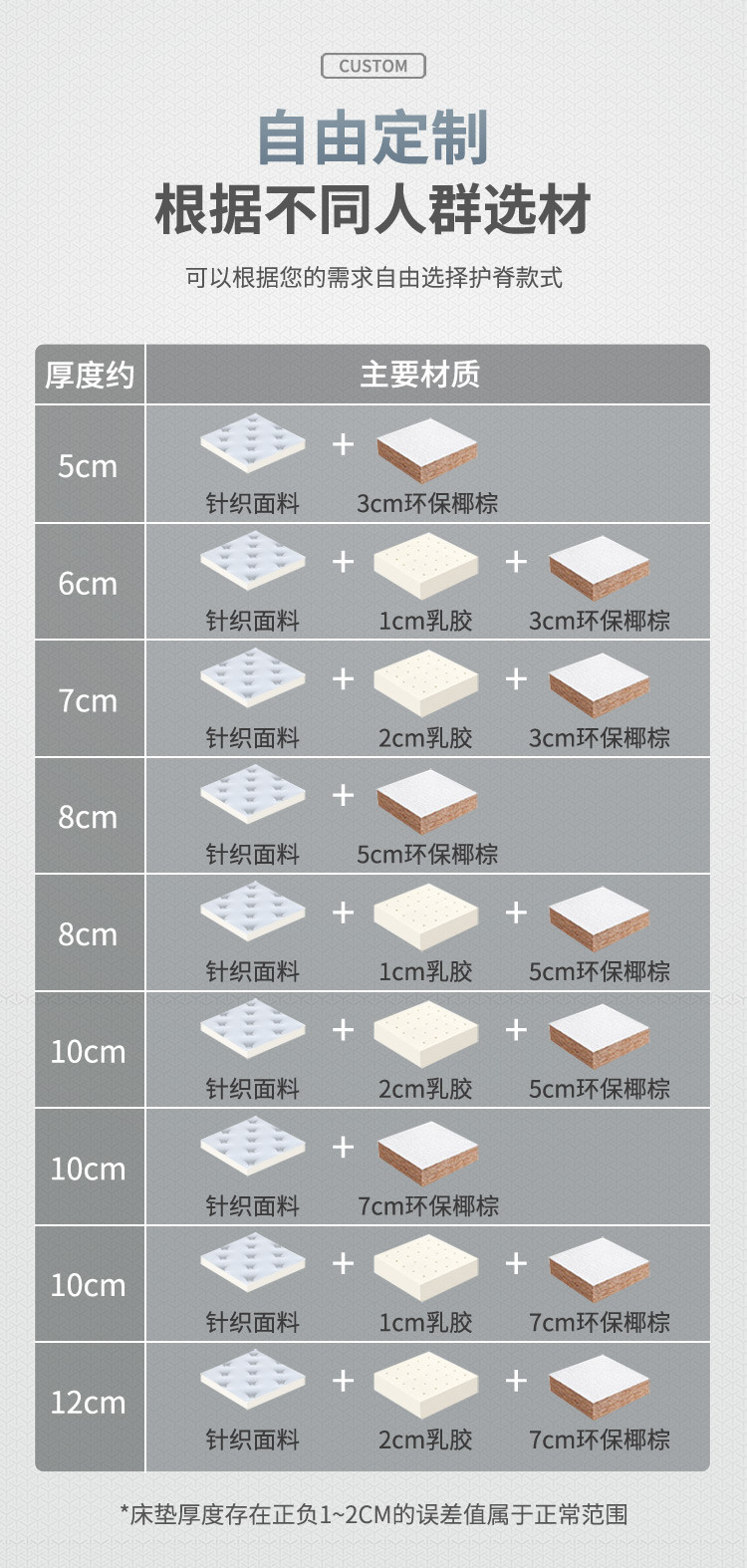 (总)时奥家纺 2025新款护颈椰棕床垫-Z01,3分棕(5cm),3分棕+1分乳胶(5cm),3分棕+2分乳胶(6cm),3分棕+3分乳胶(7cm),5分棕(7cm),5分棕+1分乳胶(7cm),5分棕+2分乳胶(8cm),5分棕+3分乳胶(9cm),7分棕(8cm),7分棕+1分乳胶(9cm),7分棕+2分乳胶(10cm),7分棕+3分乳胶(11cm),10分棕(11cm),10分棕+1分乳胶(12cm),10分棕+2分乳胶(13cm),10分棕+3分乳胶(15cm),3分棕(5cm)-黄麻配置,3分棕+1分乳胶(5cm)-黄麻配置,3分棕+2分乳胶(6cm)-黄麻配置,3分棕+3分乳胶(7cm)-黄麻配置,5分棕(7cm)-黄麻配置,5分棕+1分乳胶(7cm)-黄麻配置,5分棕+2分乳胶(8cm)-黄麻配置,5分棕+3分乳胶(9cm)-黄麻配置,7分棕(8cm)-黄麻配置,7分棕+1分乳胶(9cm)-黄麻配置,7分棕+2分乳胶(10cm)-黄麻配置,7分棕+3分乳胶(11cm)-黄麻配置