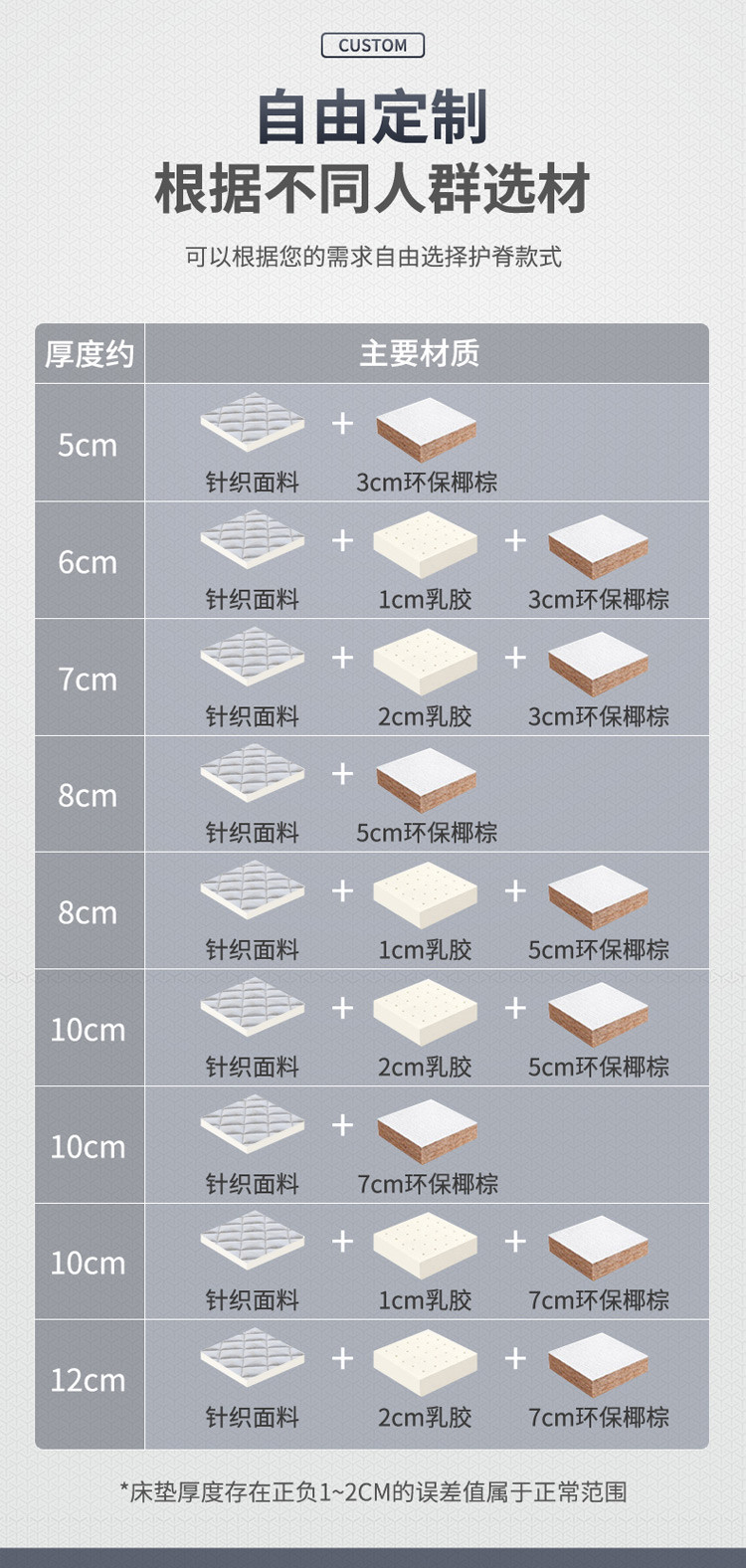 (总) 时奥 2023新款椰棕乳胶床垫GM格韵灰,3分棕(5cm),3分棕+1分胶(6cm),3分棕+2分乳胶-(7cm),3分棕+3分乳胶(8cm),5分棕(8cm),5分棕+1分乳胶(8cm),5分棕+2分乳胶(10cm),5分棕+3分乳胶(11cm),7分棕(10cm),7分棕+1分乳胶(10cm),7分棕+2分乳胶(12cm),7分棕+3分乳胶(13cm),10分棕(12cm),10分棕+1分乳胶(13cm),10分棕+2分乳胶(14cm),10分棕+3分乳胶(15cm)
