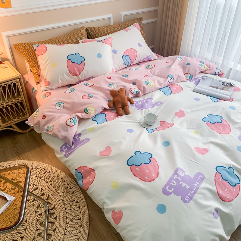 (总)感遇家纺 2025新款小清新甜系全棉四件套,百丽兔,波点小女孩,点点小狗,复古樱桃,格子草莓,格子樱桃,花间牧歌,灰条猫咪,奶绿,宁夏,森林小熊猫,甜心波点