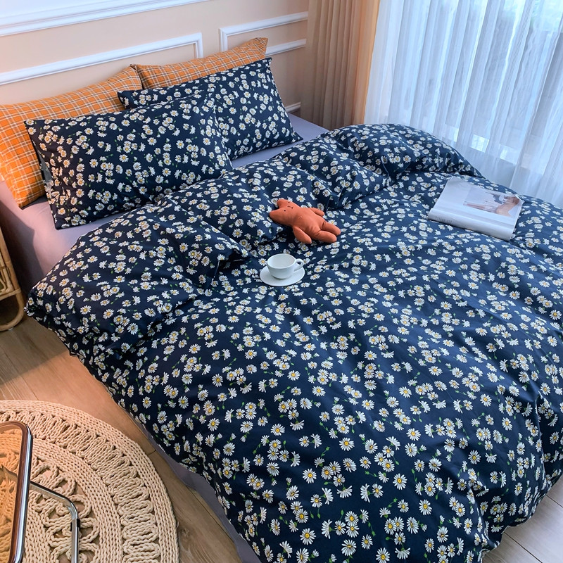 (总)感遇家纺 2022新款全棉印花四件套,格子小花,黑格恐龙,蓝色心情,浅暖