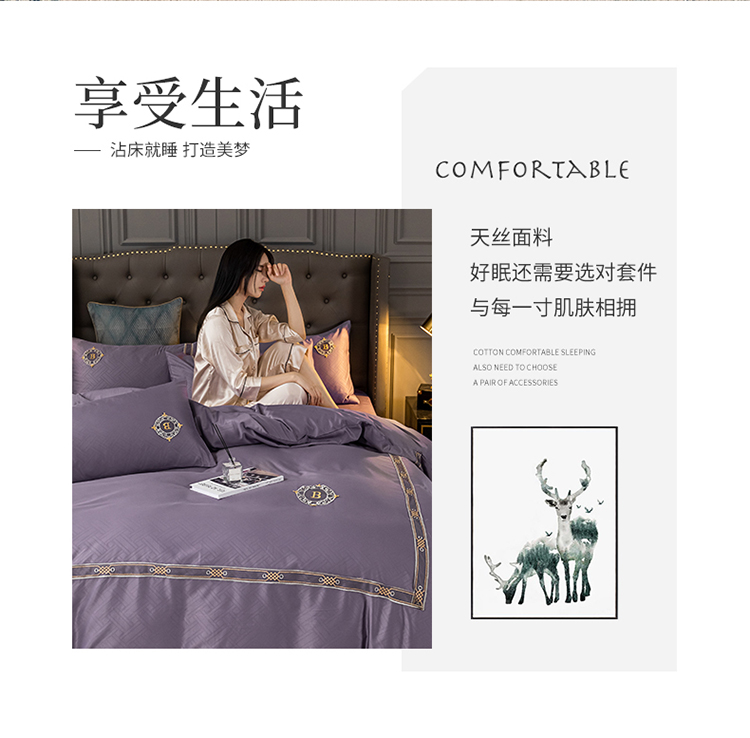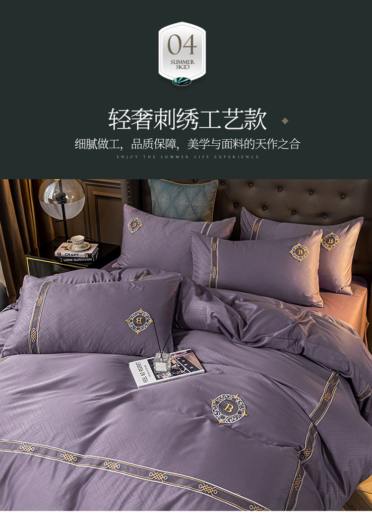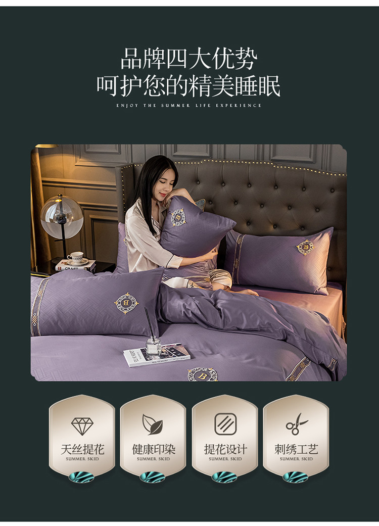 商品名称:意尚风情 2023新款天丝提花蕾丝刺绣四件套 香芋紫