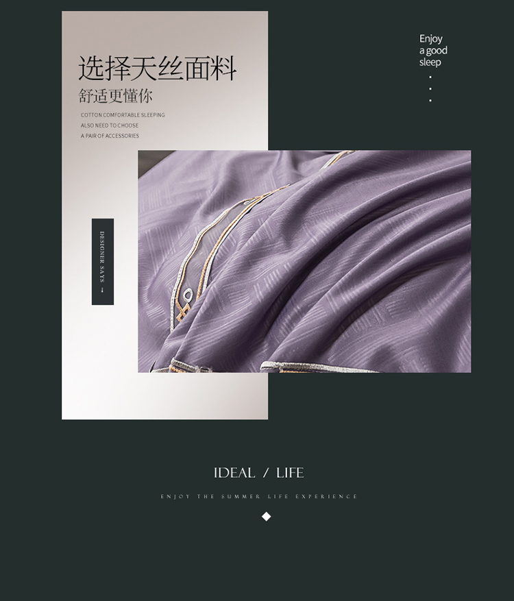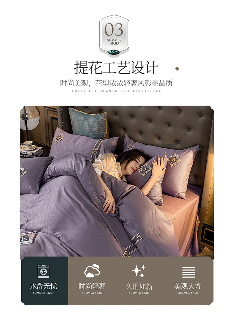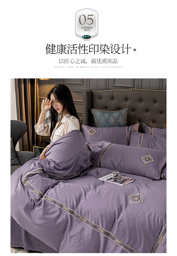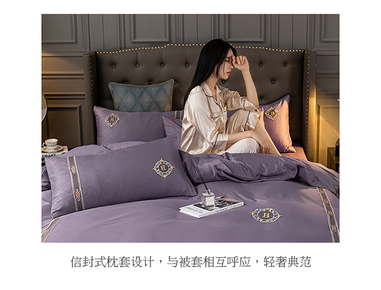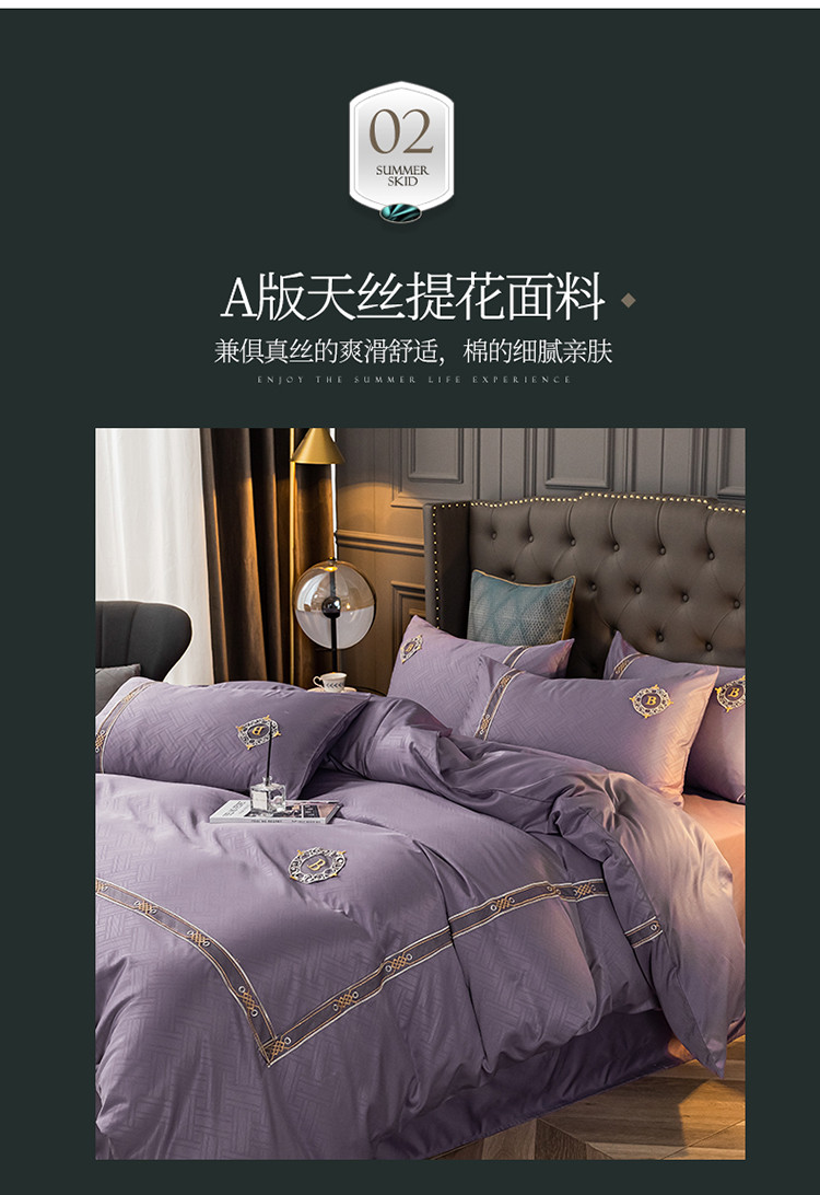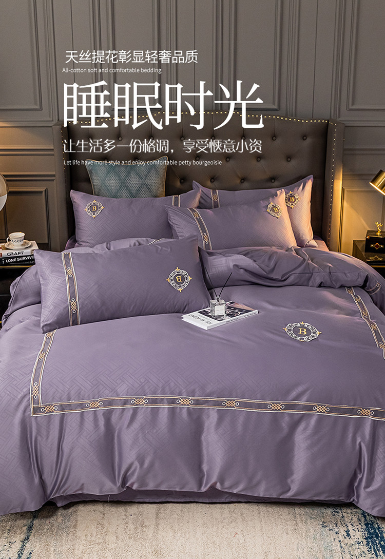意尚风情 2023新款天丝提花蕾丝刺绣四件套 香芋紫