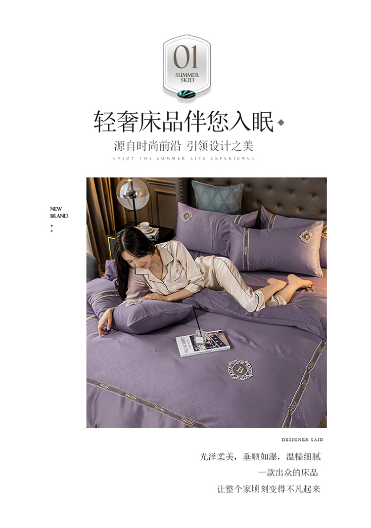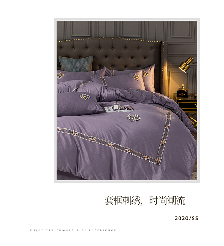 (总)意尚风情 2023新款120s全棉提花四件套,宾利蓝,淡雅紫,高级灰,焦糖橙,孔雀绿,少女粉