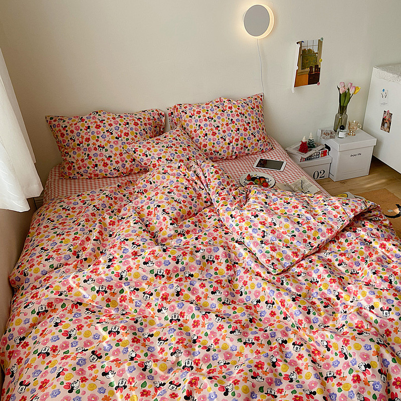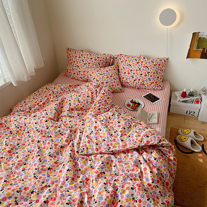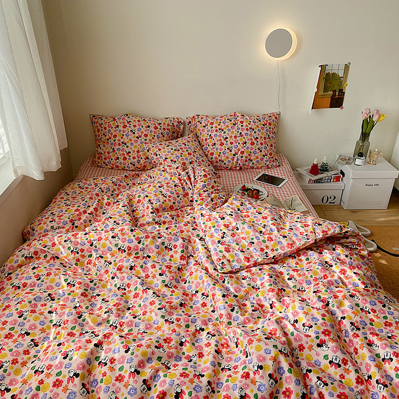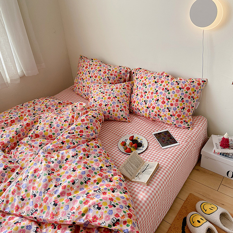 (总)尺素 2026田园小清新纯棉四件套出口韩国ins博主风全棉被套纯色加大床单1.8床笠印花枕套学生宿舍三件套,春不晚 桃粉,花似锦 奶白,紫鸢千夏紫