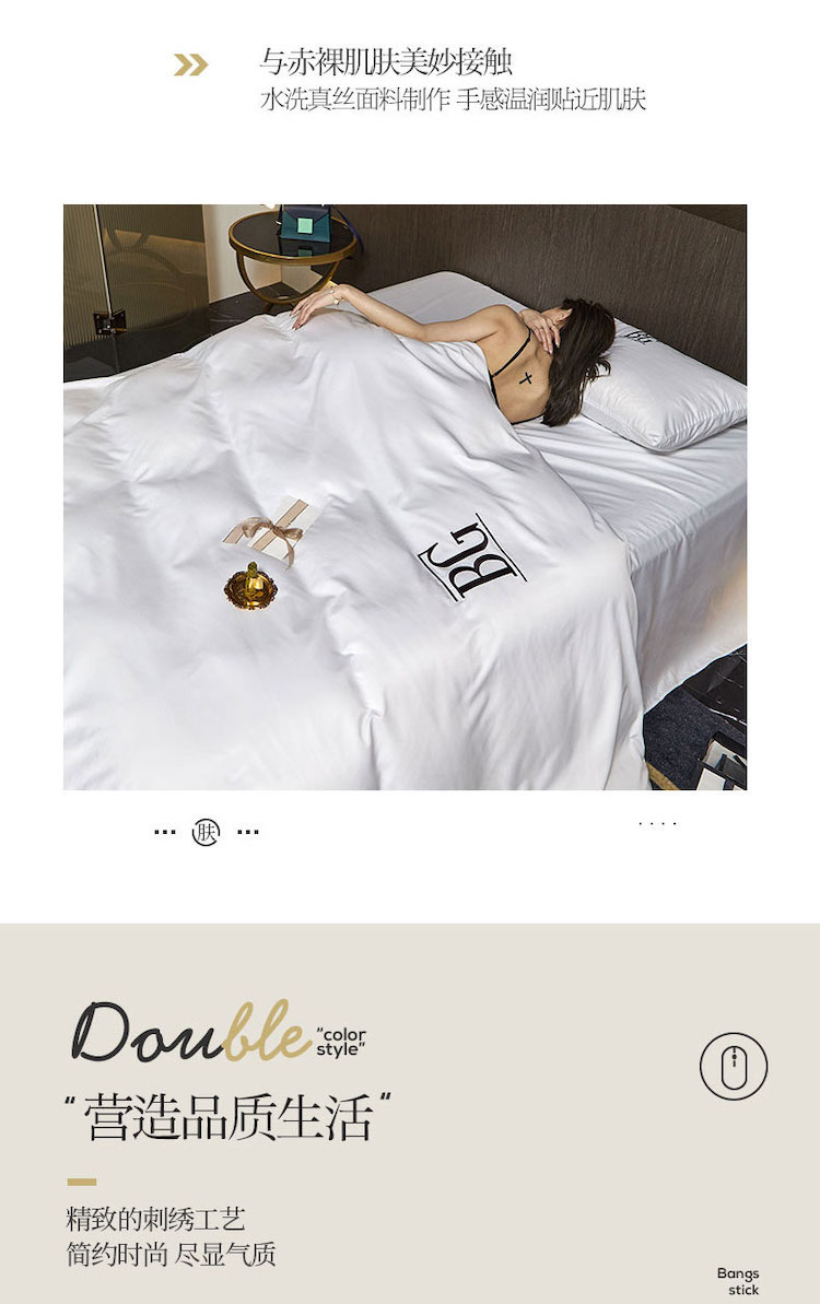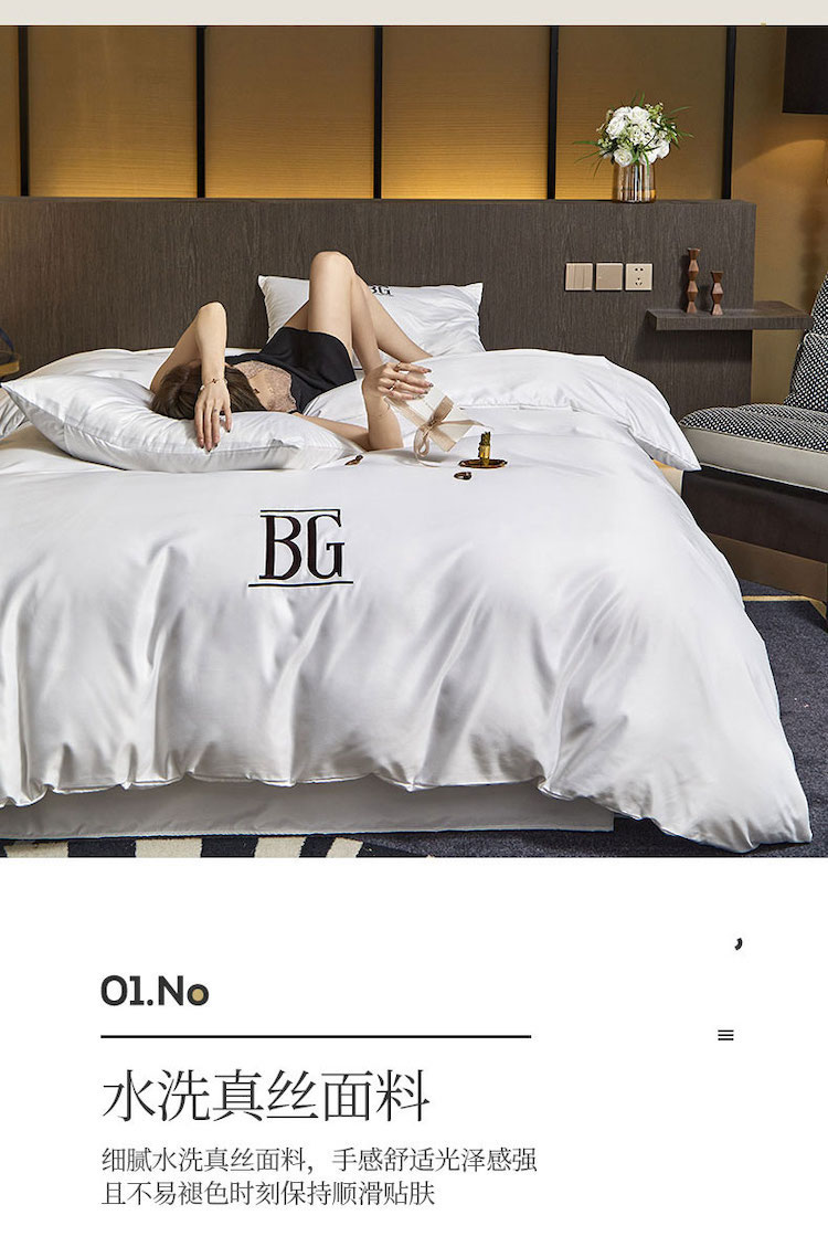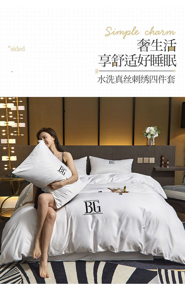 凡客 2021春夏新款60支水洗真丝绣花四件套 路易斯-白色