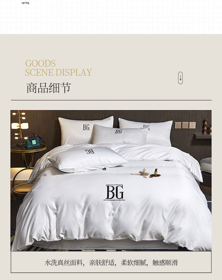 商品名称:凡客 2021春夏新款60支水洗真丝绣花四件套 路易斯-白色