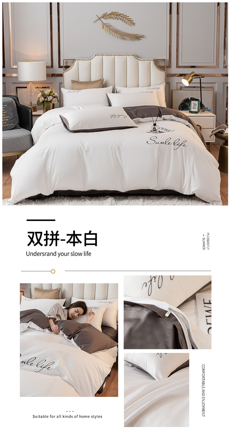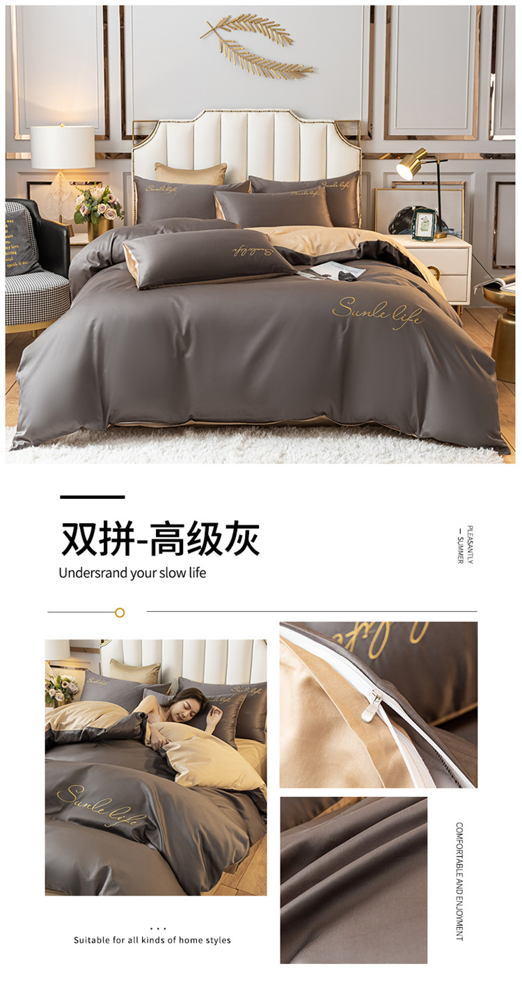 商品名称:古吉梦 2024新款水洗棉双拼刺绣单被套 双拼-香槟金