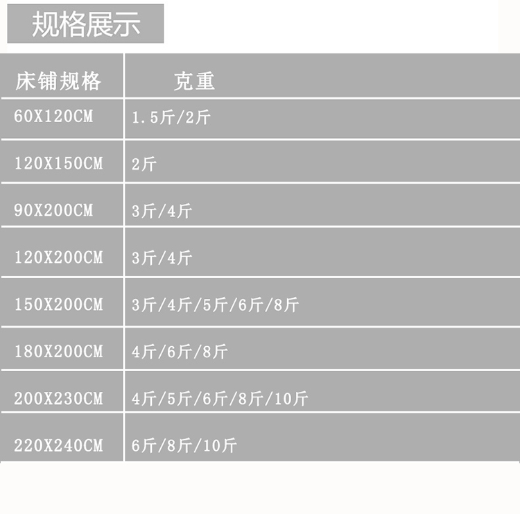 120*200cm4斤 | ¥36.00 |