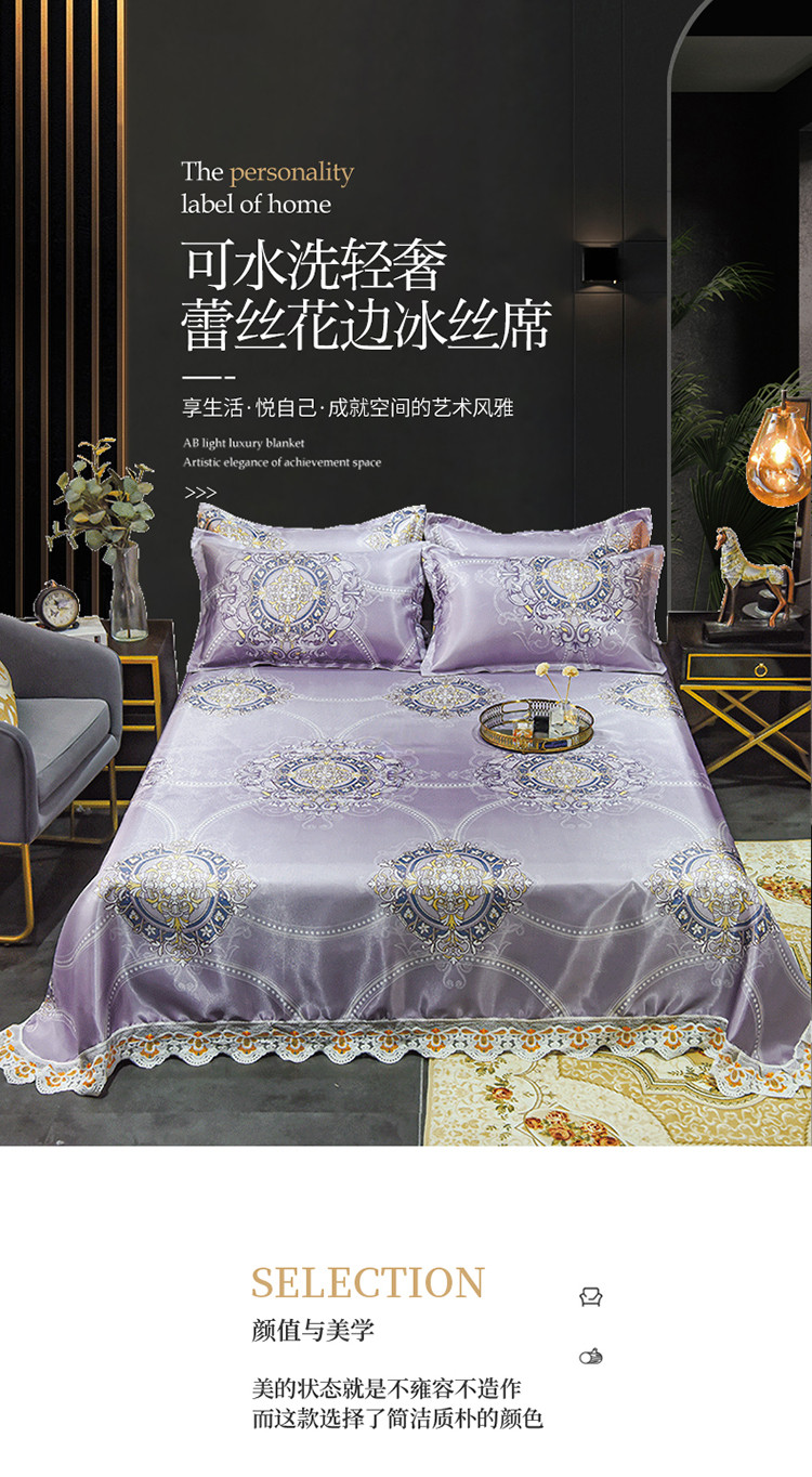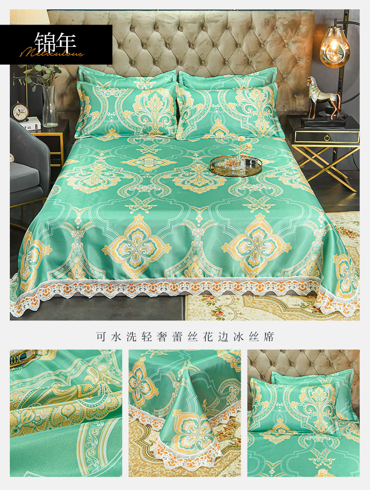 (总)ds生活馆 2022新款欧式蕾丝花边床单款凉席冰丝席