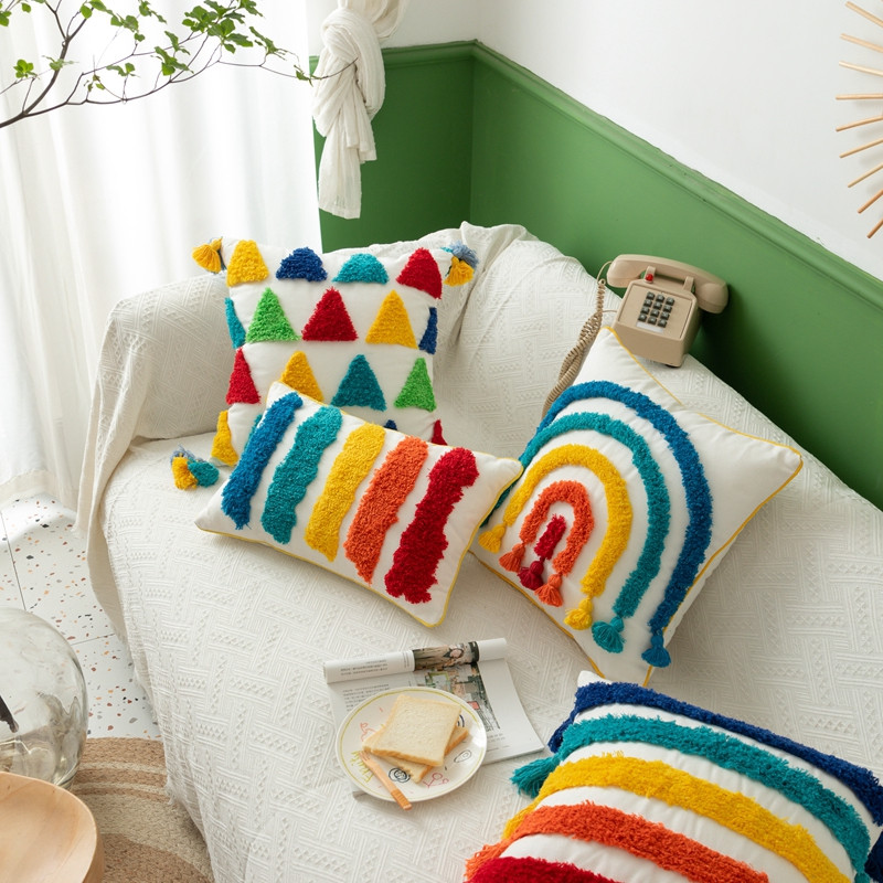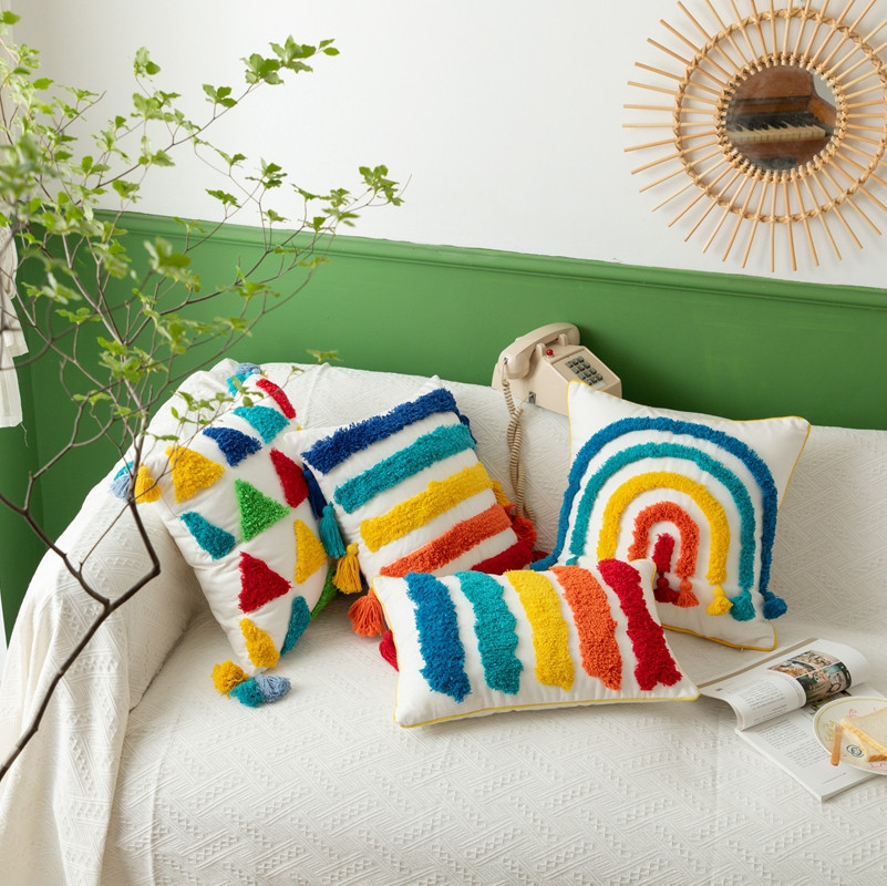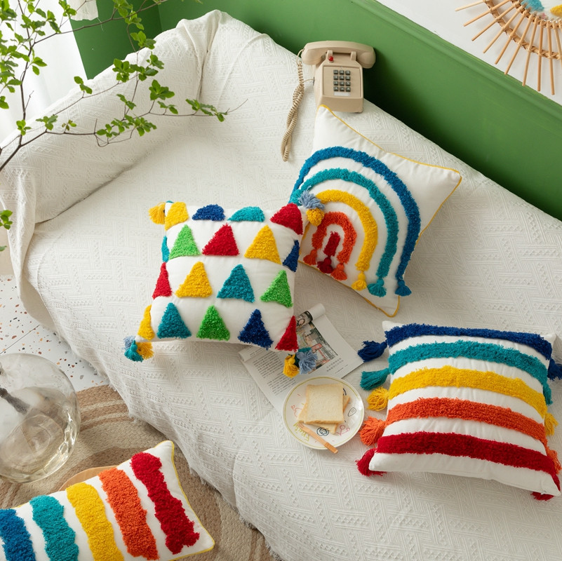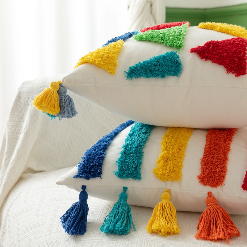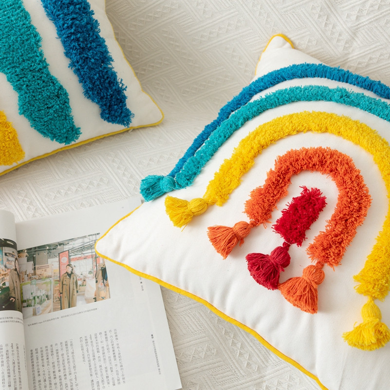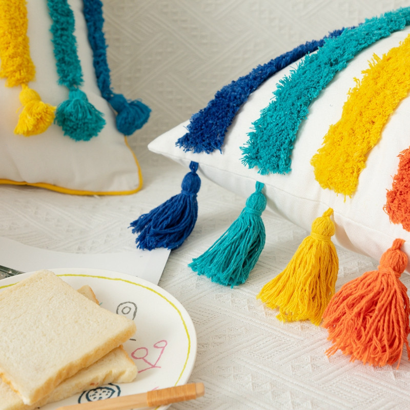 (总)918拾朵家居 2025新款热卖流苏抱枕,波浪纹(A款),波浪纹(B款),侧边流苏(黄色),侧边流苏(绿色)