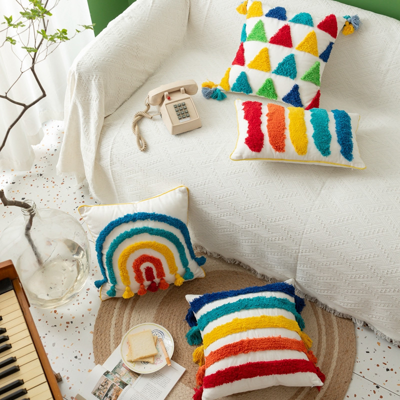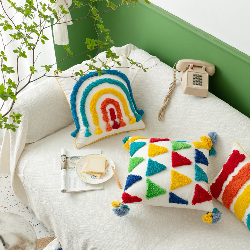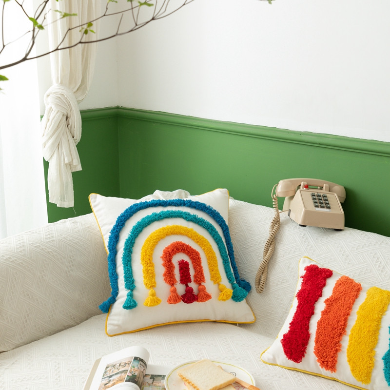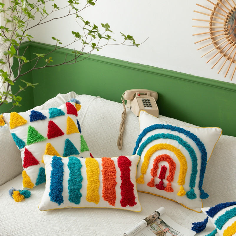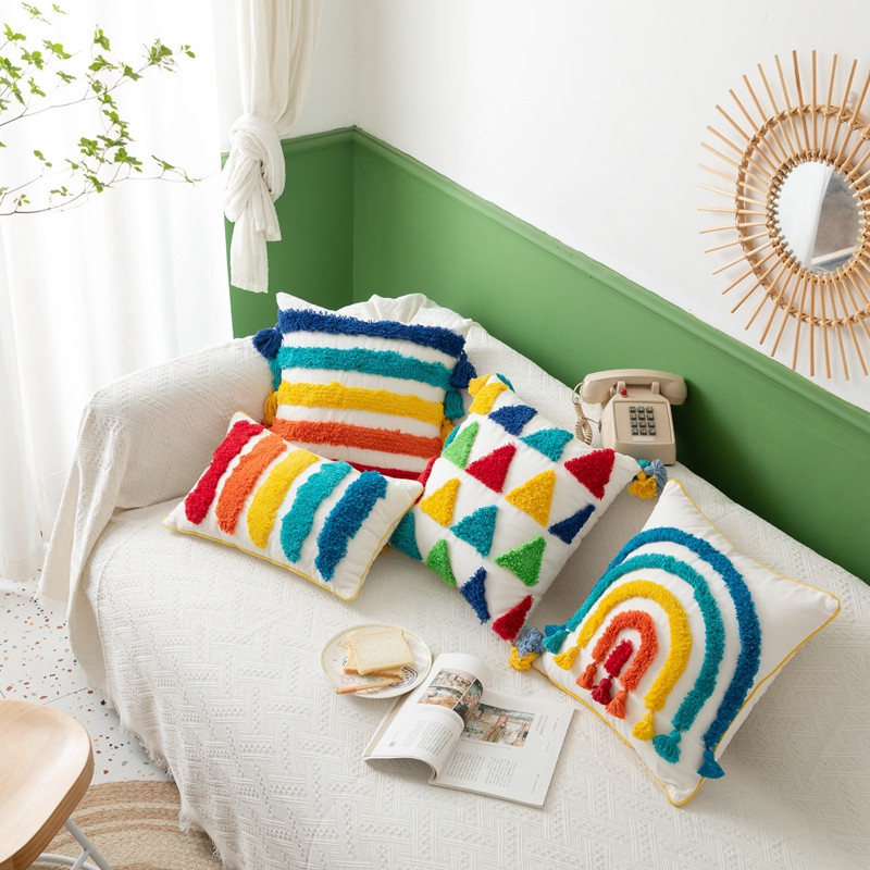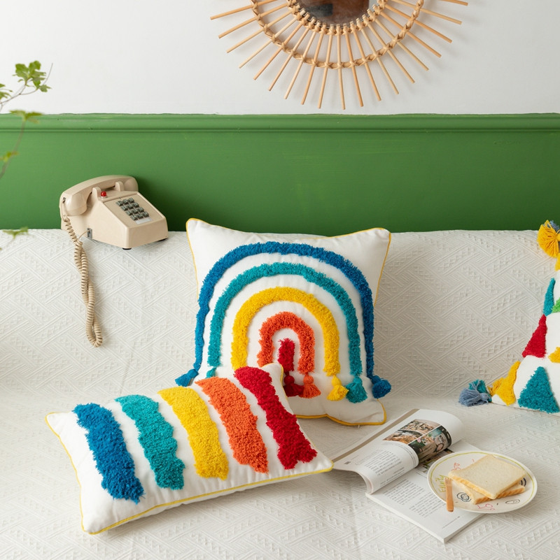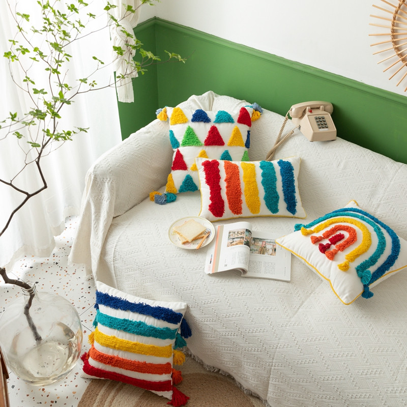 (总)918拾朵家居 2025新款热卖流苏抱枕,波浪纹(A款),波浪纹(B款),侧边流苏(黄色),侧边流苏(绿色)