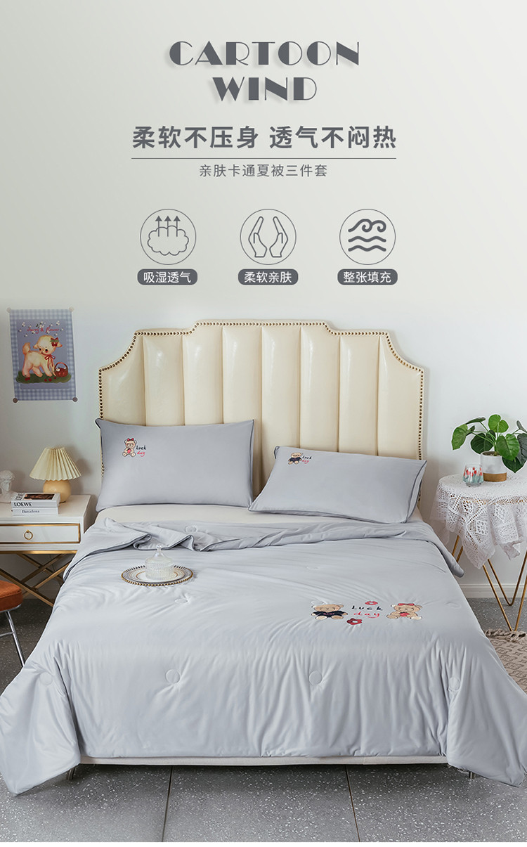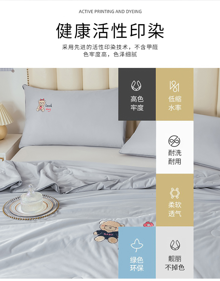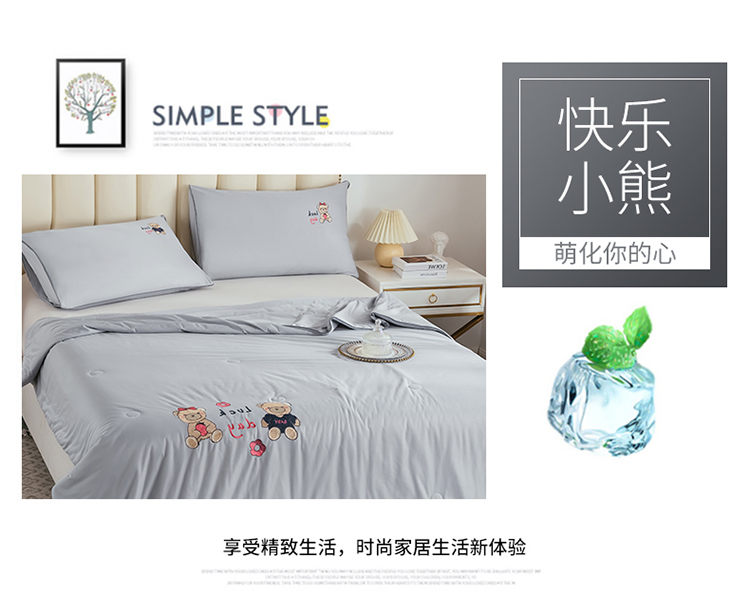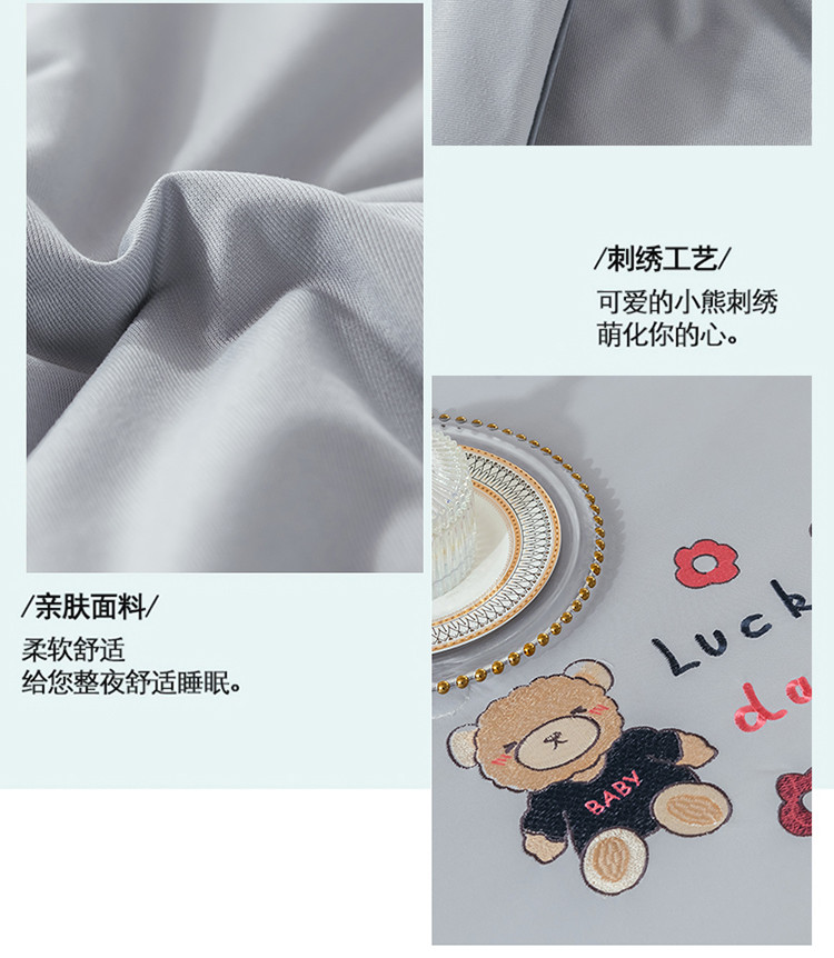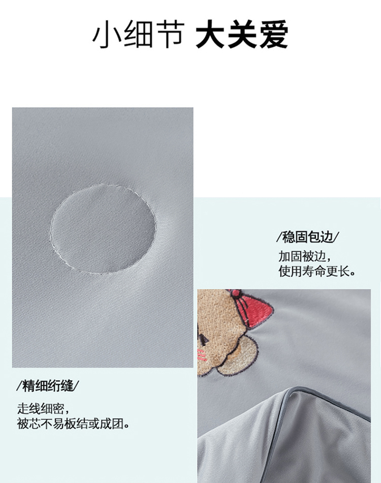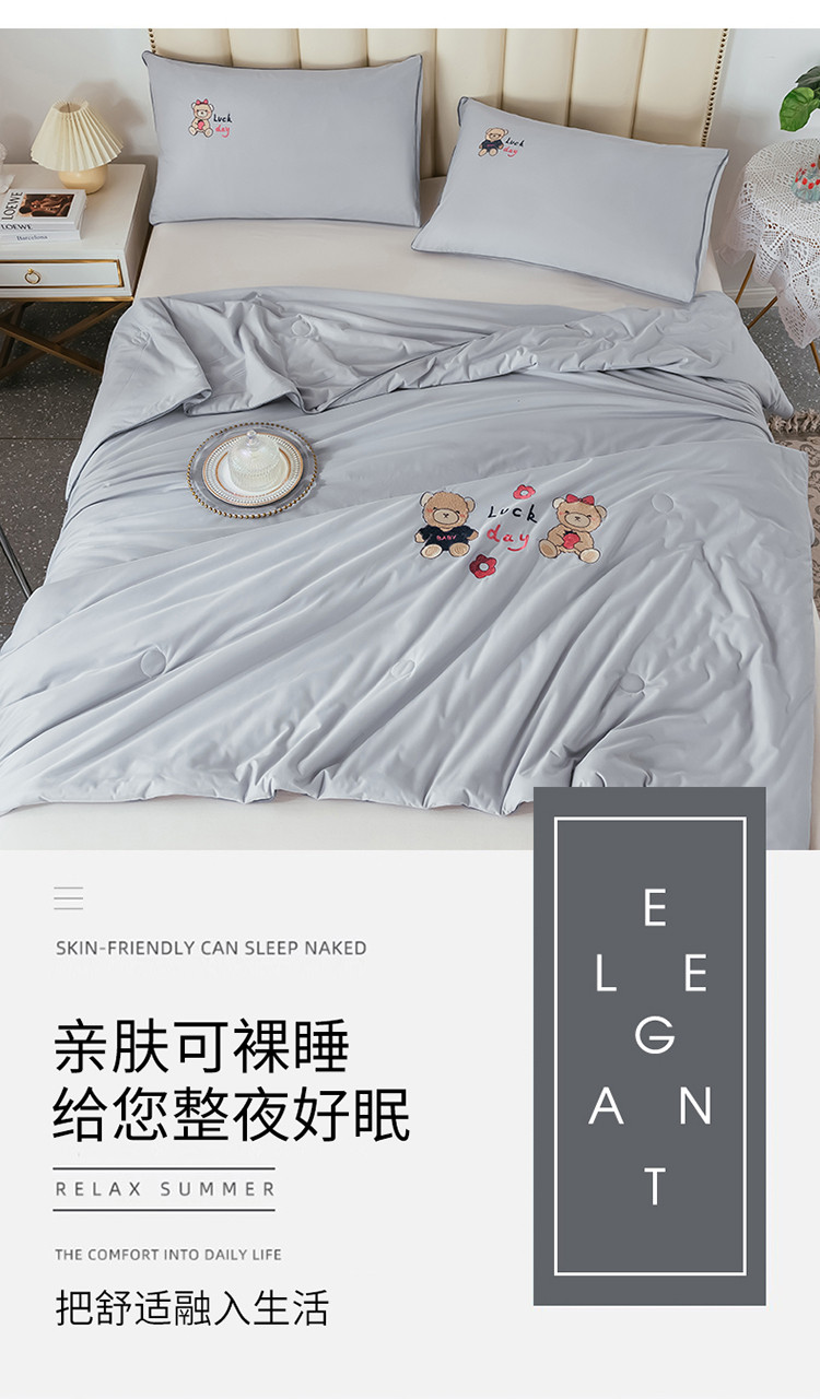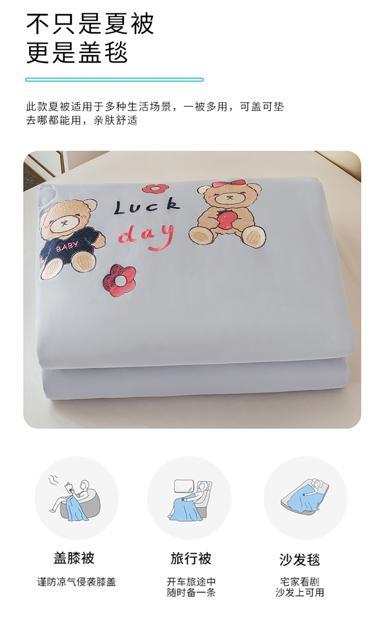 商品名称:芃成家纺 2021新款针织棉绣花夏被 快乐小熊浅灰
