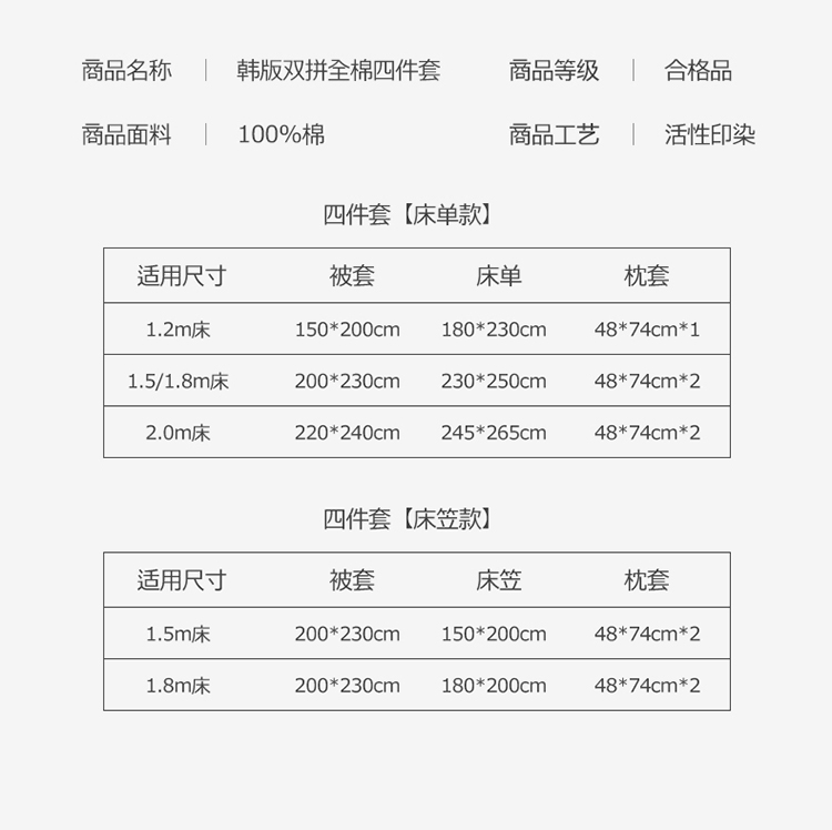 商品名称:(总)三朵 2021新款13372全棉韩版双拼四件套