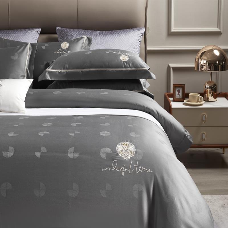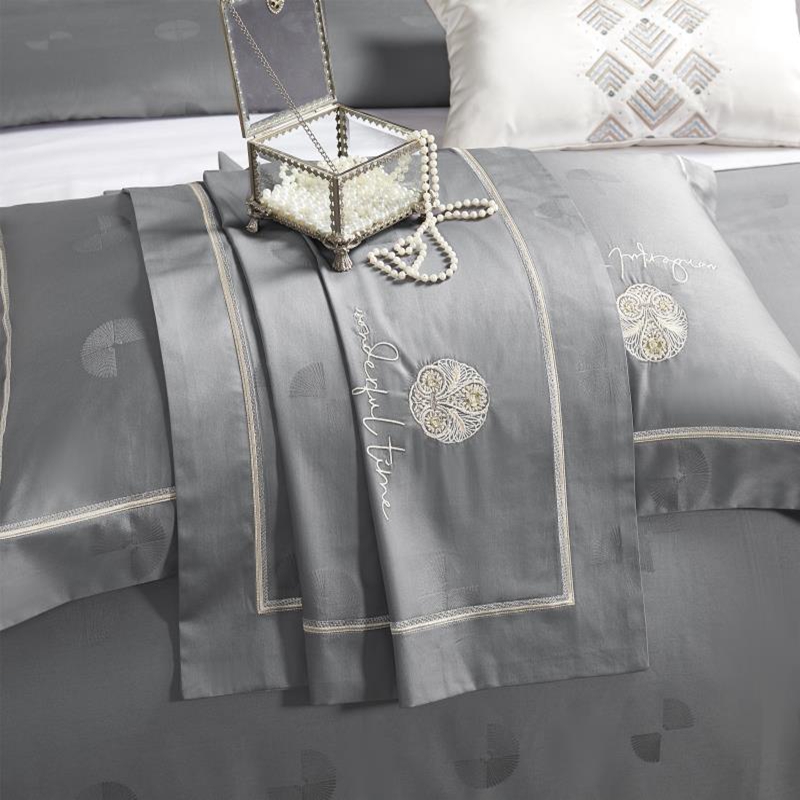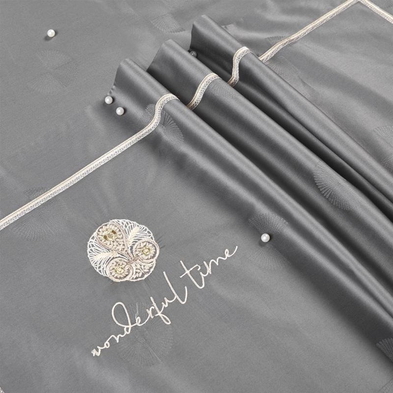 总玖玖爱家纺 纯棉100支贡缎长绒棉刺绣被套三件套四件套加大四件套,白色,高级灰,卡其,蓝灰,绿色,浅桔,深蓝,紫豆沙