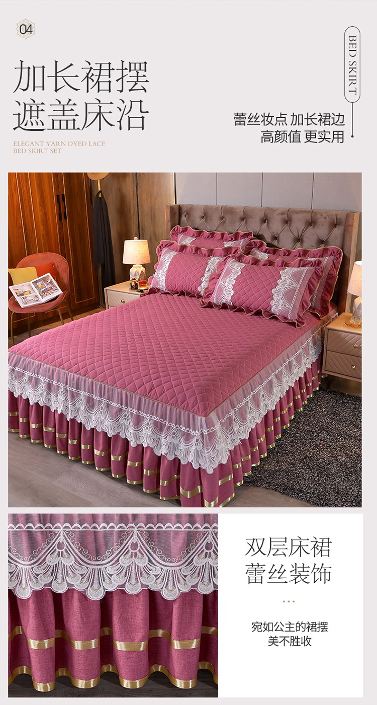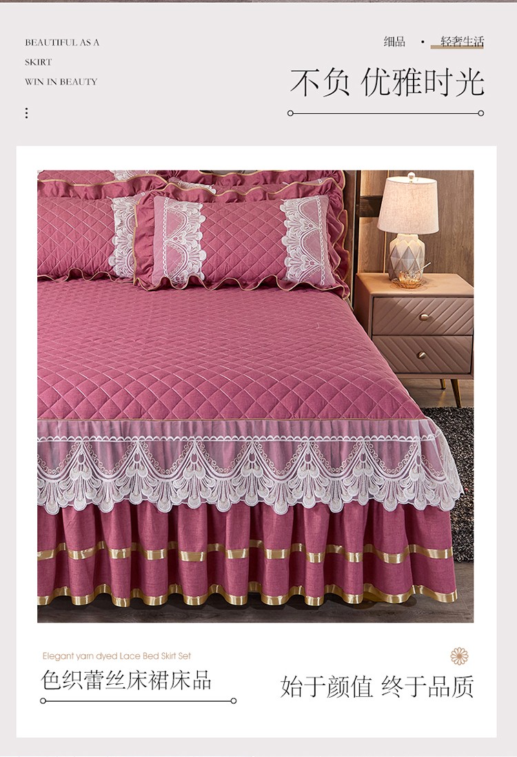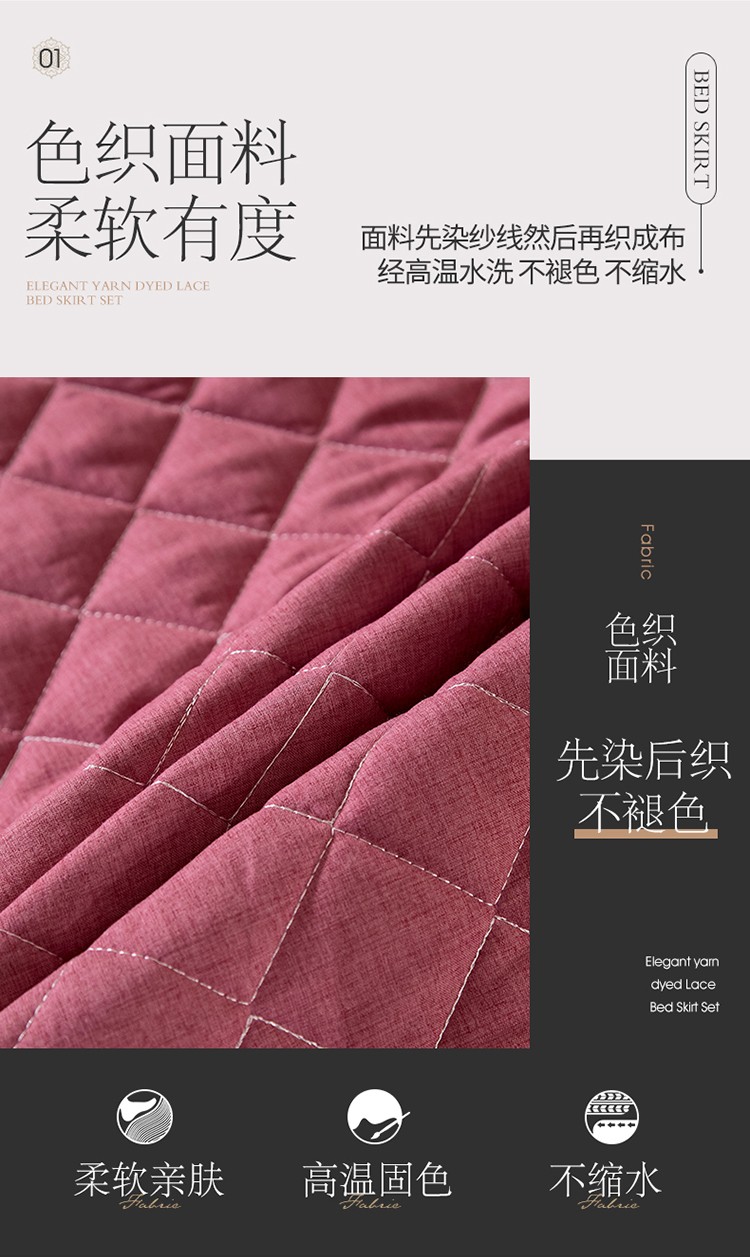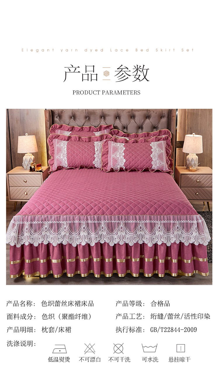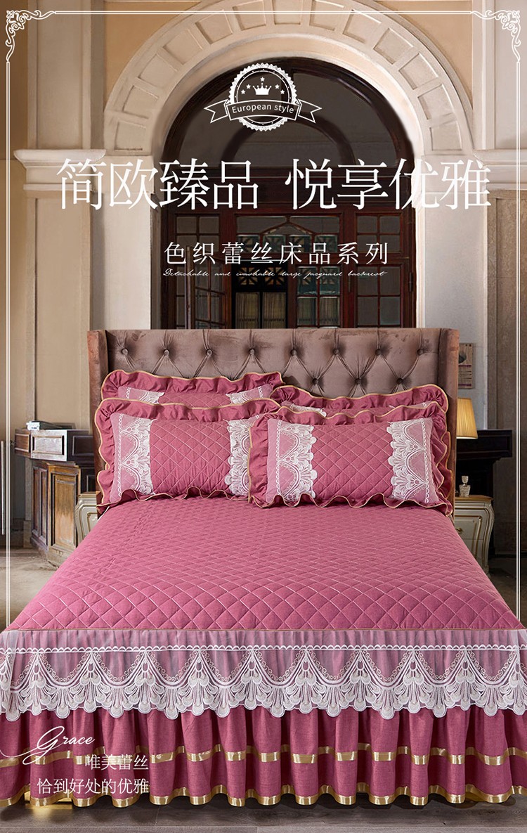 • 91家纺网 家纺一手货源 找家纺 网红馆 2025新款芭莎风情色织蕾丝单品床裙被套枕套 珊瑚红