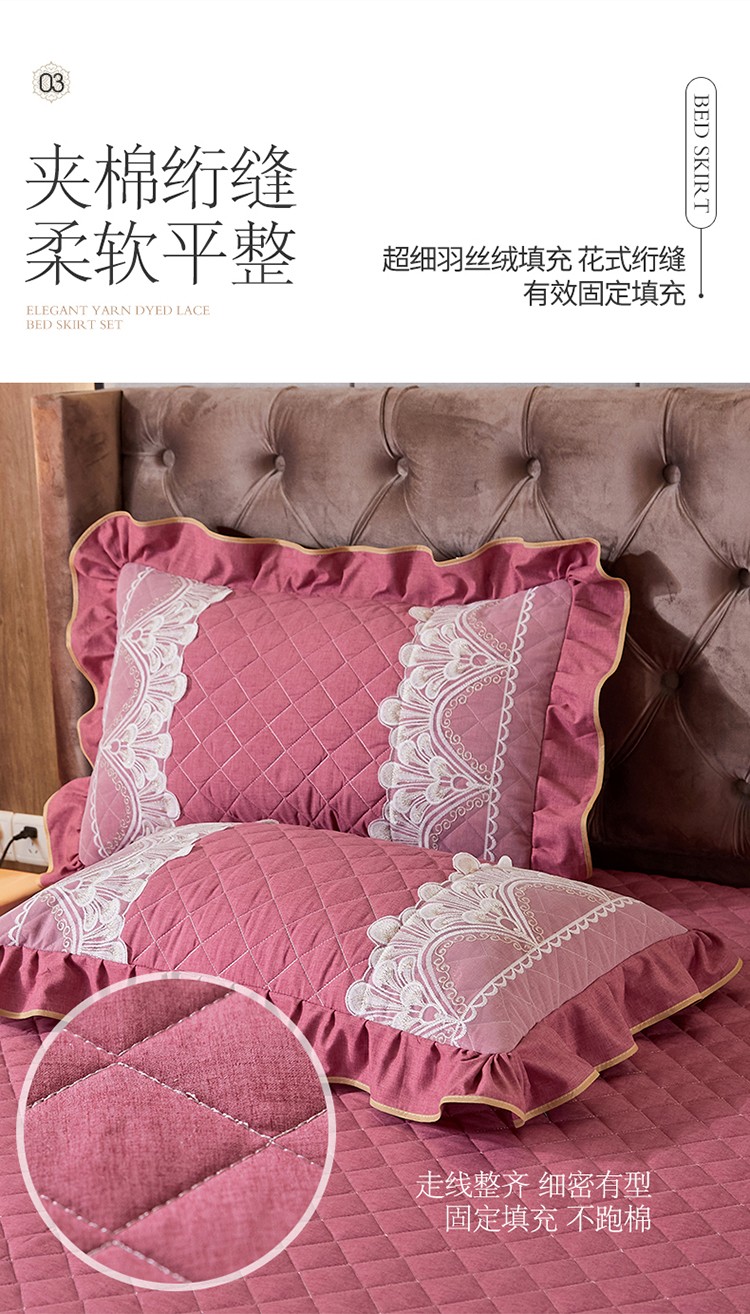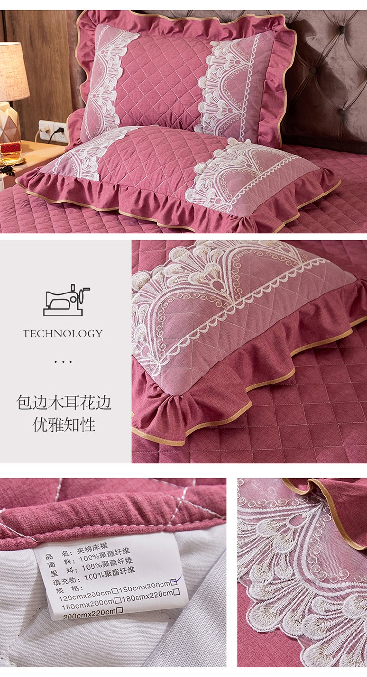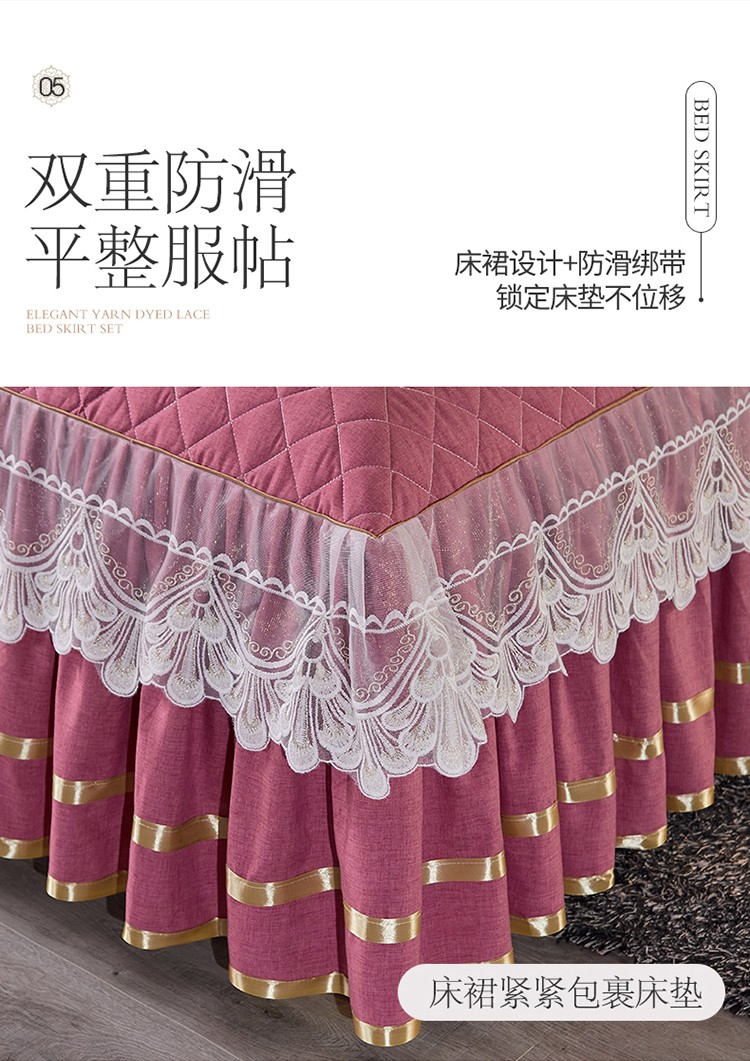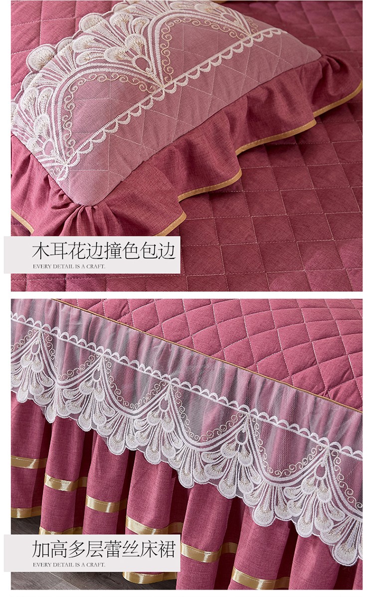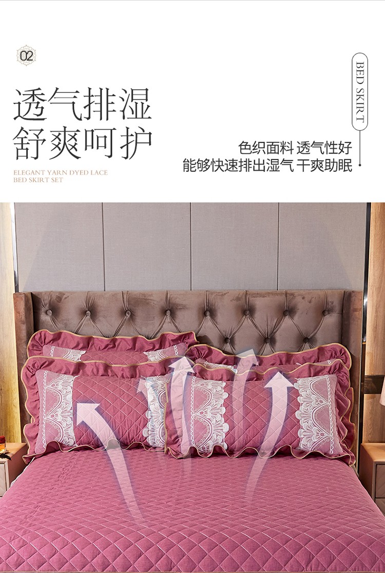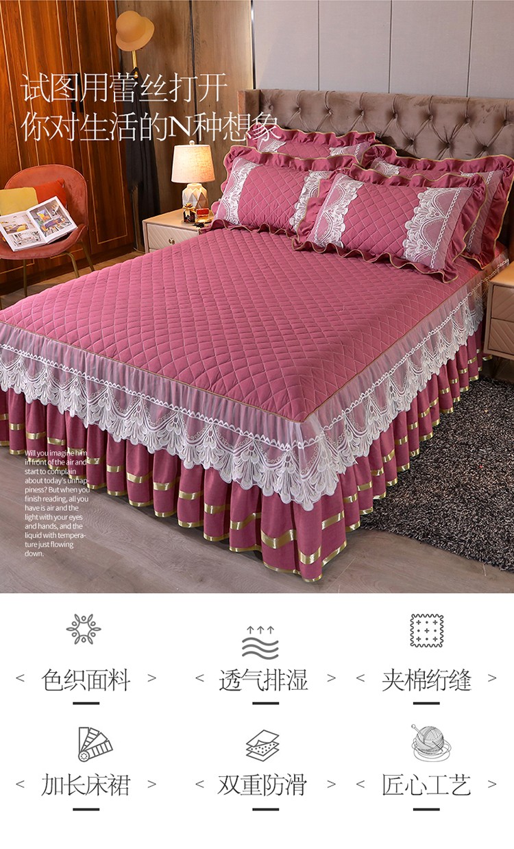 • 91家纺网 家纺一手货源 找家纺 网红馆 2025新款芭莎风情色织蕾丝单品床裙被套枕套 珊瑚红