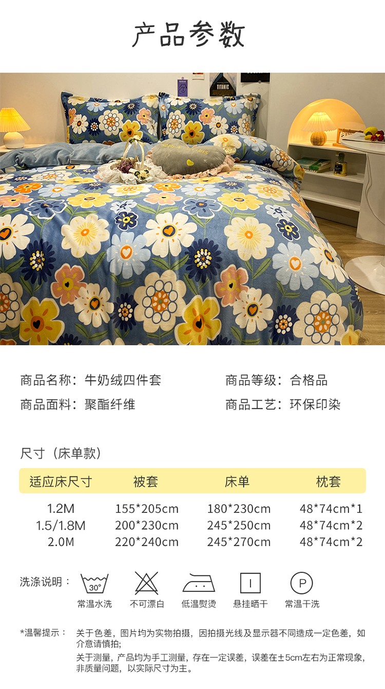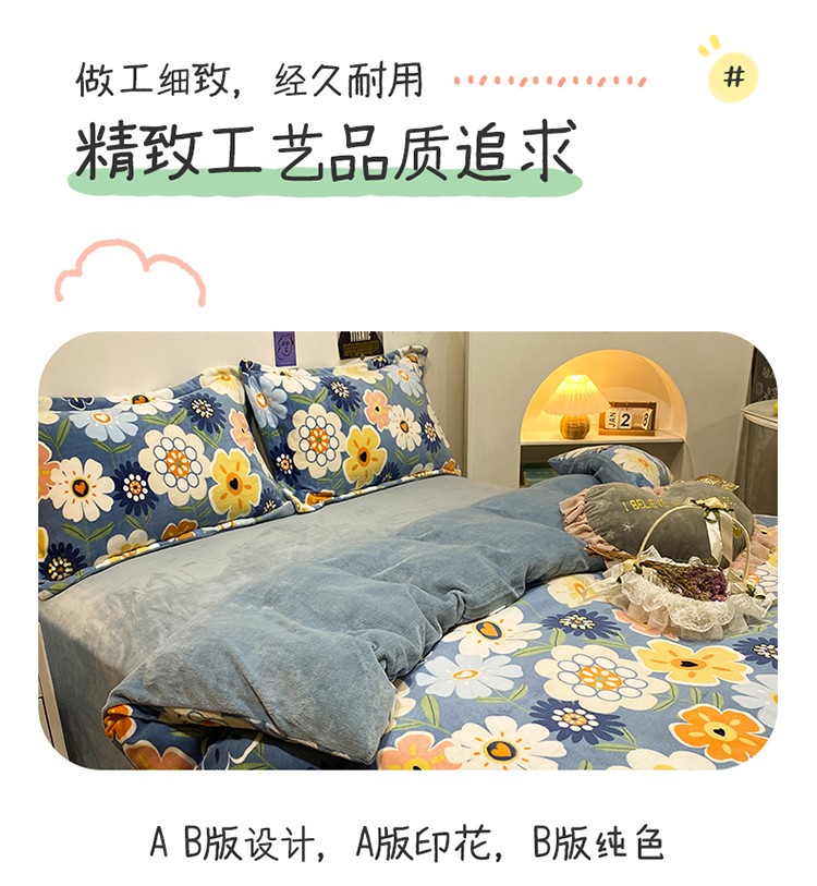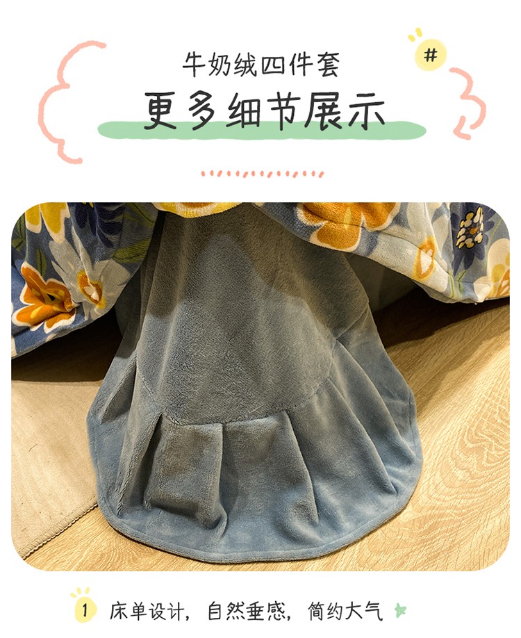 商品名称:珺柔家纺2021新款牛奶绒印花四件套 繁花
