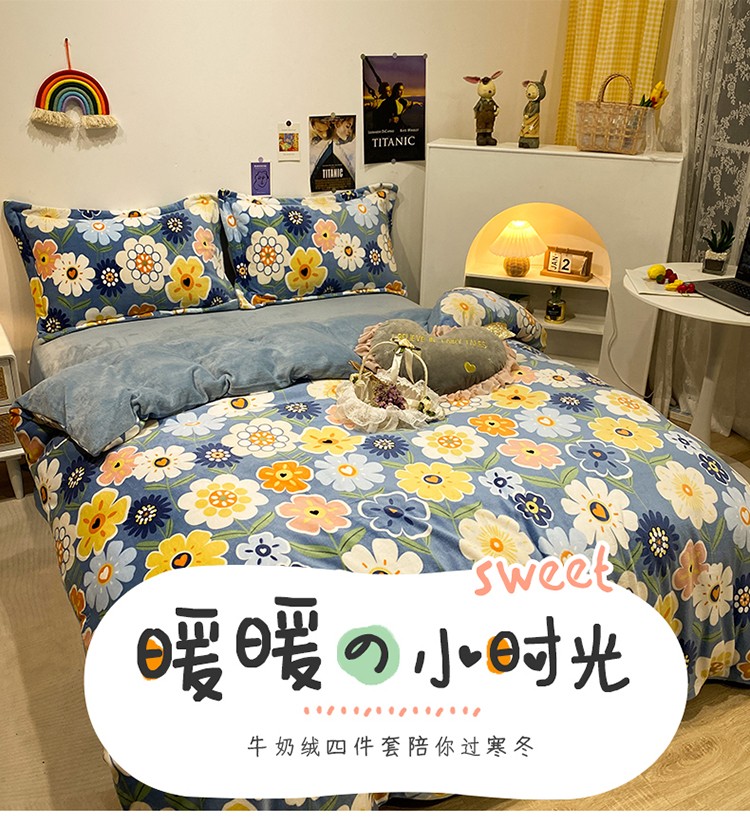 珺柔家纺2021新款牛奶绒印花四件套 繁花