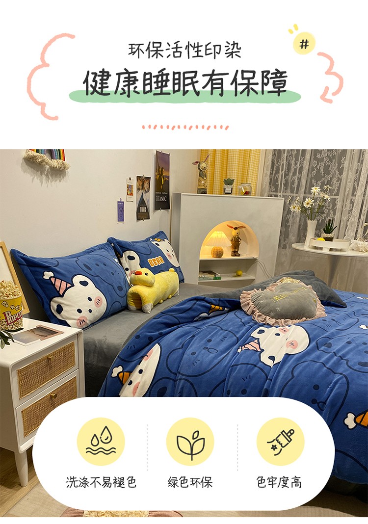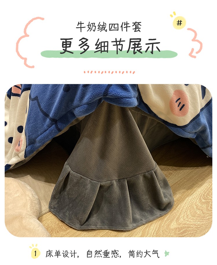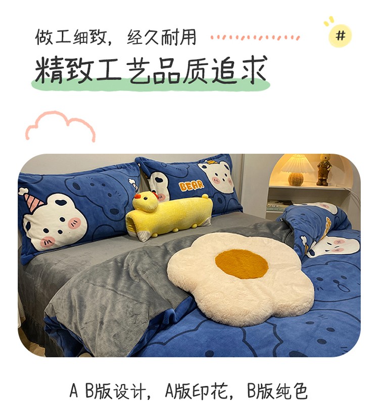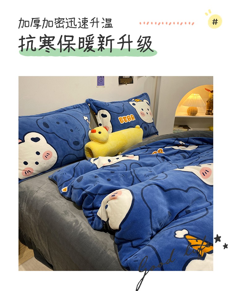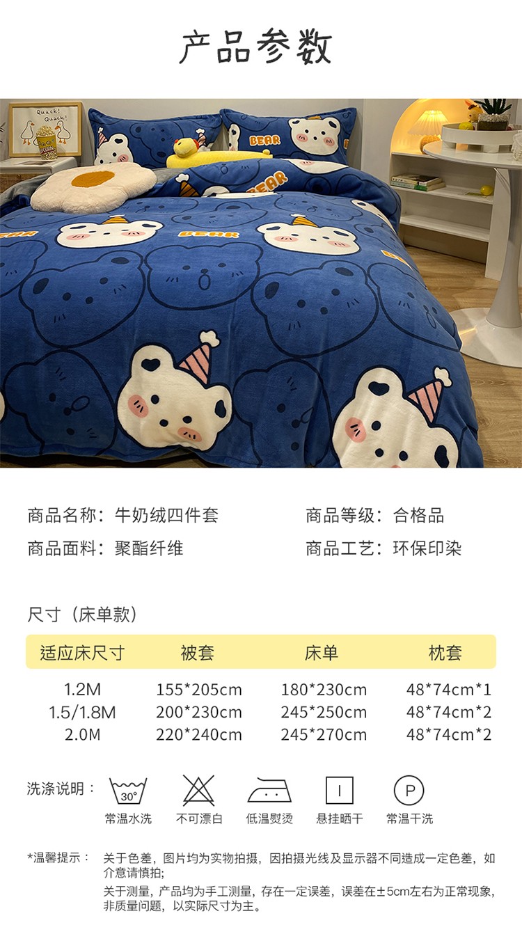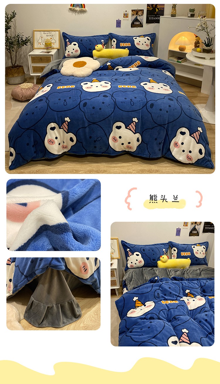商品名称:珺柔家纺2021新款牛奶绒印花四件套 熊头兰