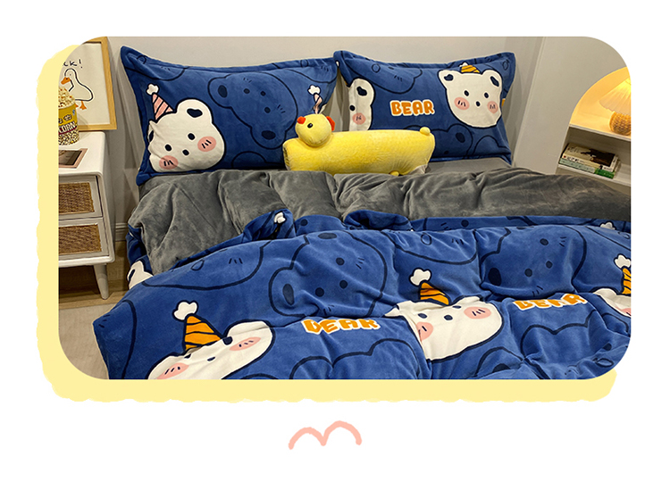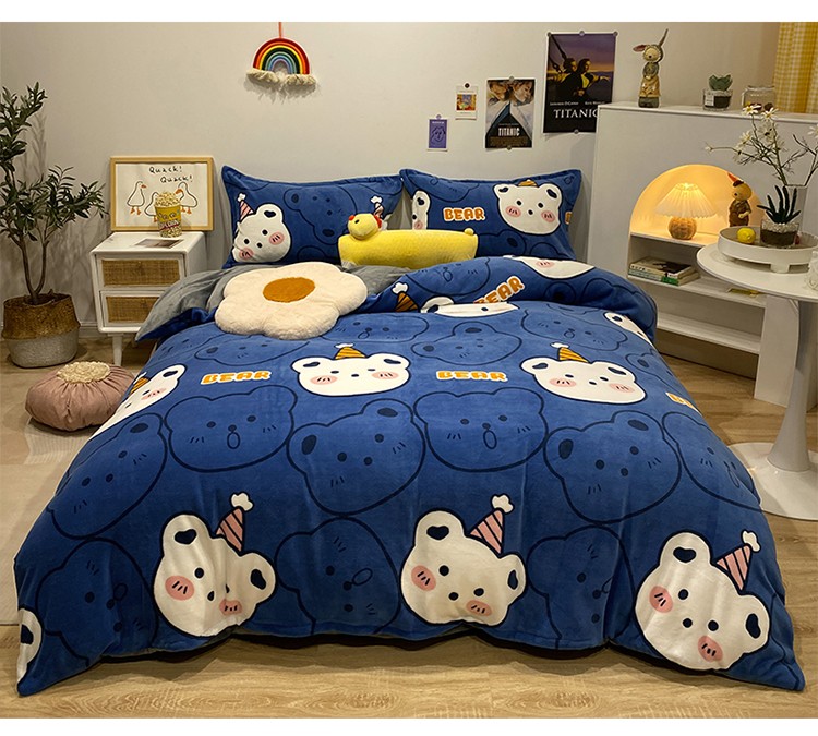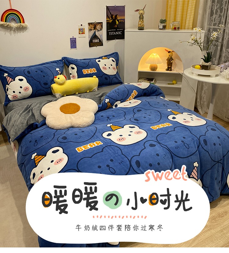 珺柔家纺2021新款牛奶绒印花四件套 熊头兰