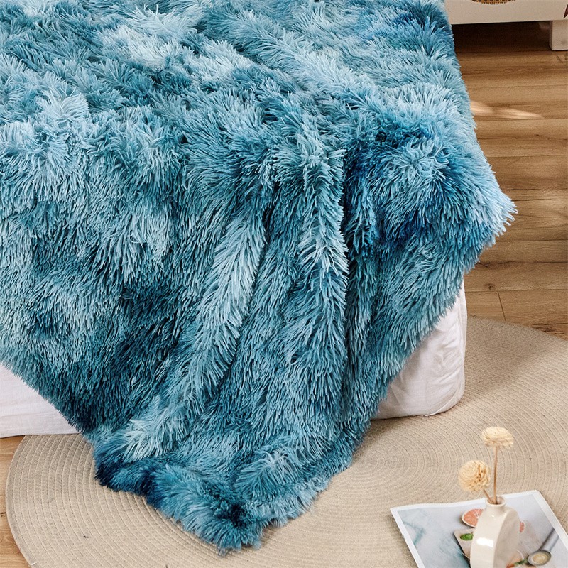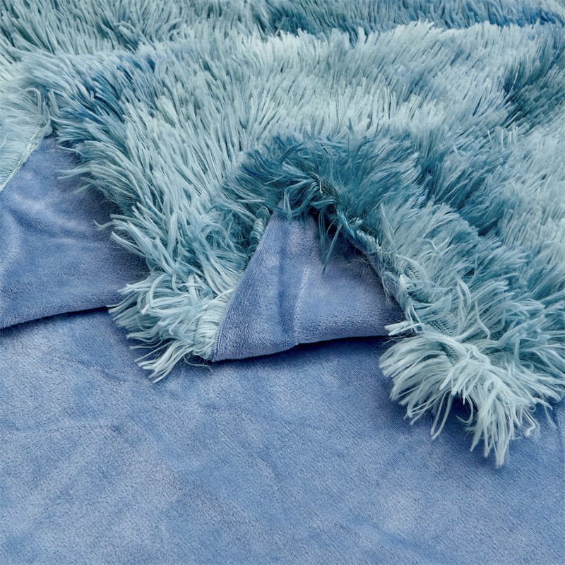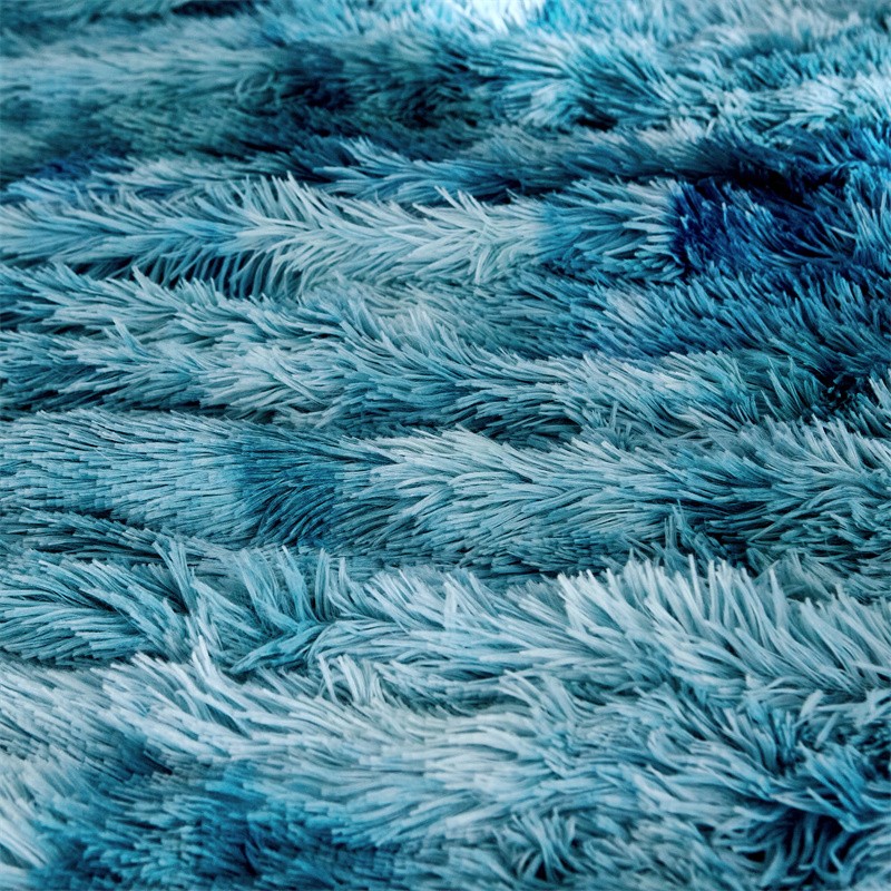 品尚嘉 水貂绒毛毯长毛绒法莱绒双层跨境外贸毯子 扎染-蓝色