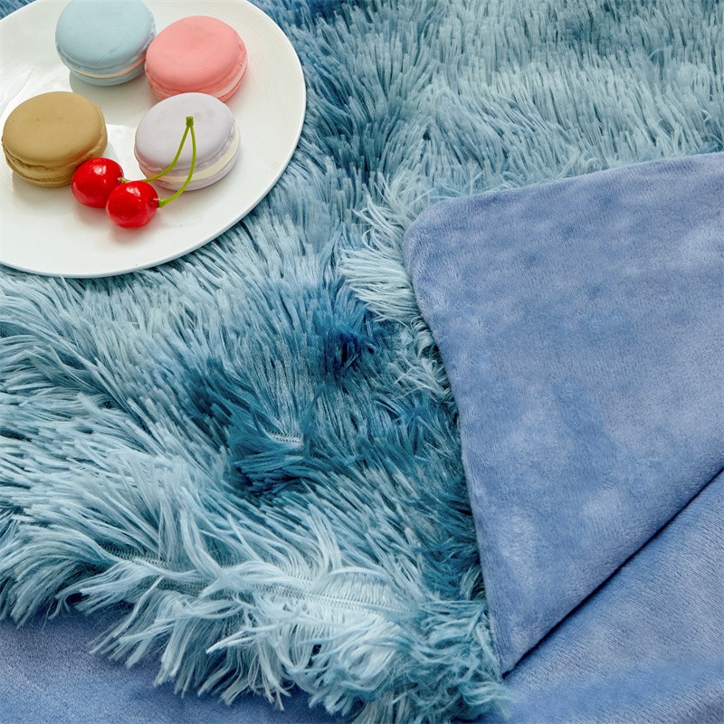 商品名称:品尚嘉 水貂绒毛毯长毛绒法莱绒双层跨境外贸毯子 扎染-蓝色
