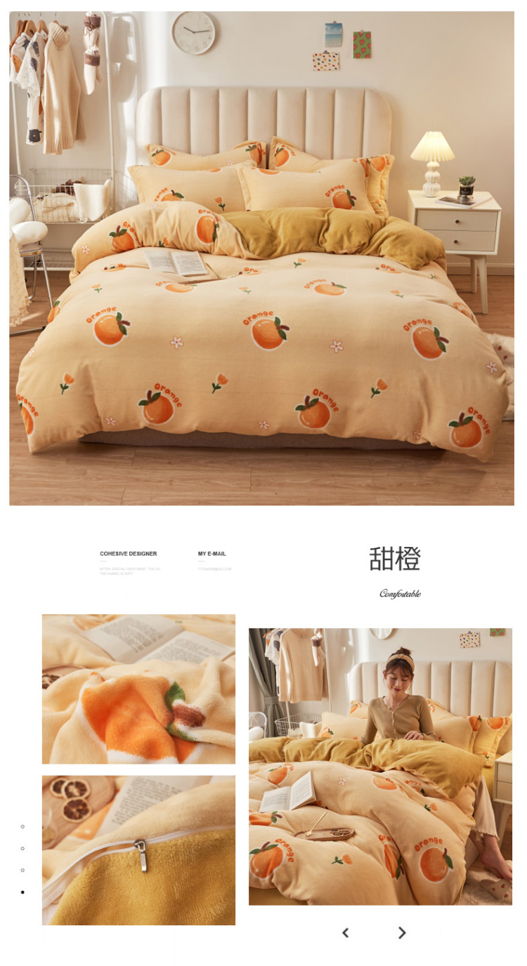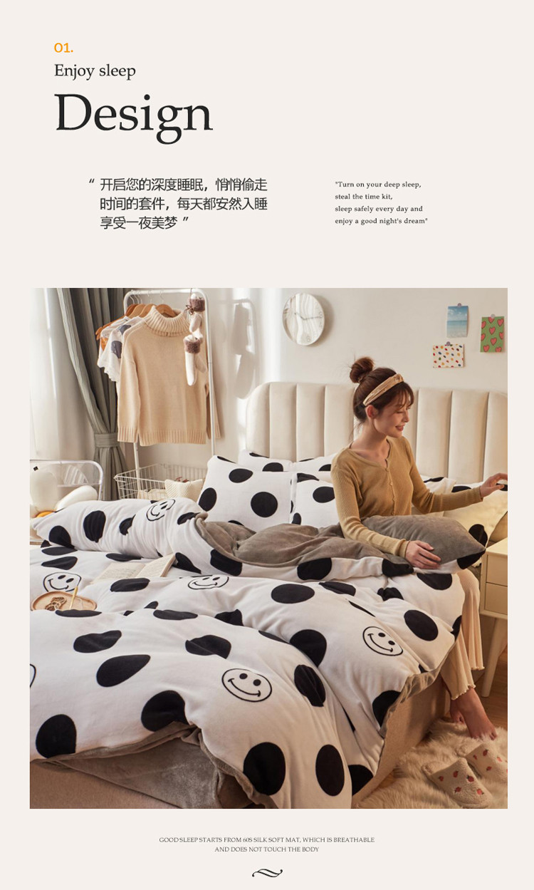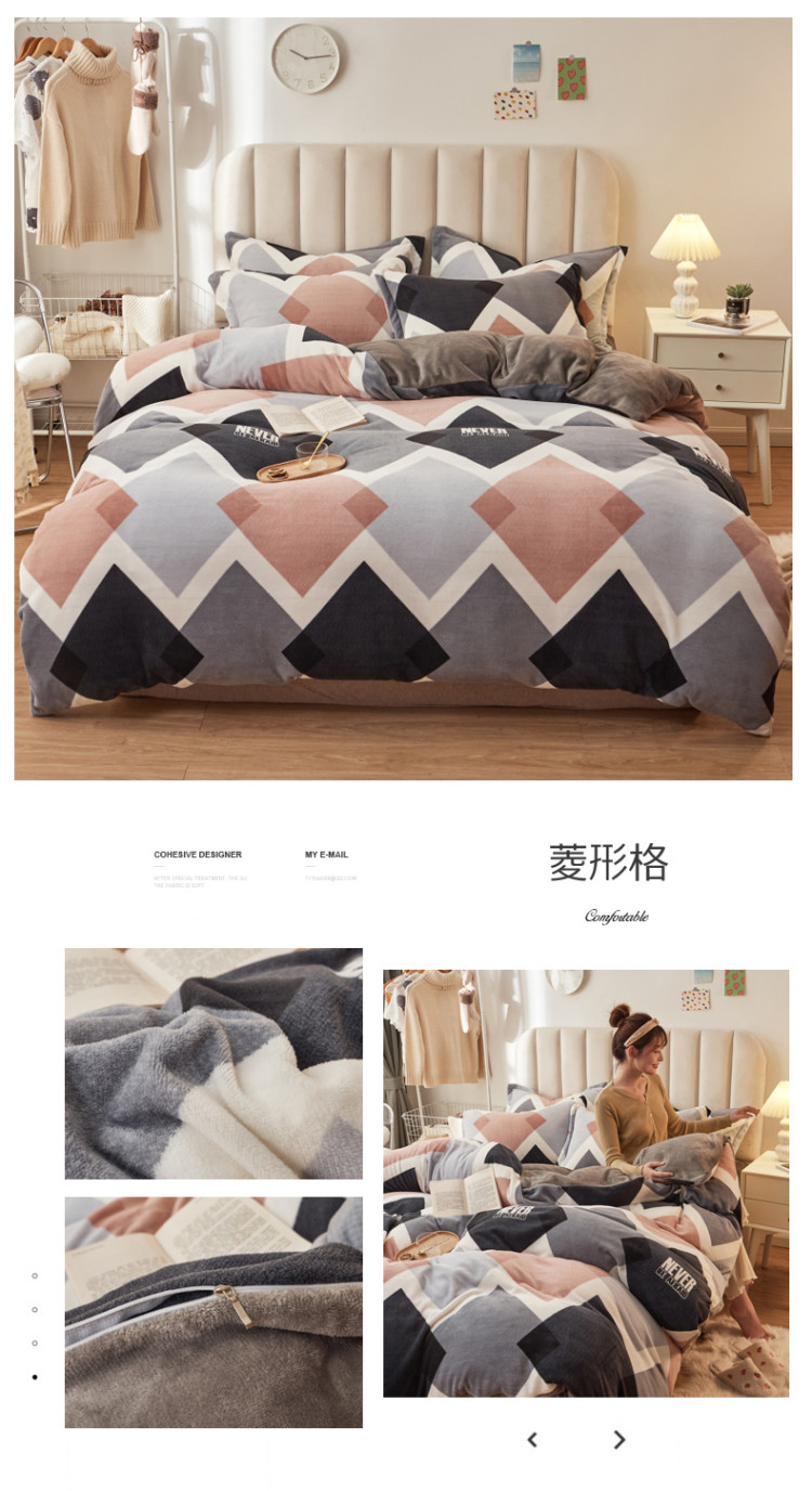 (总)寐居家纺 2021新款印花牛奶绒四件套浅色调