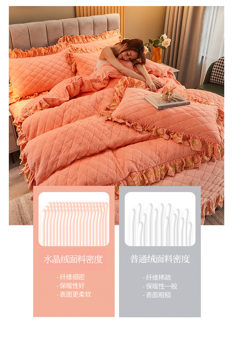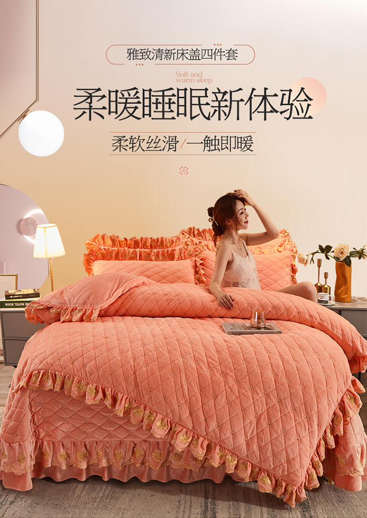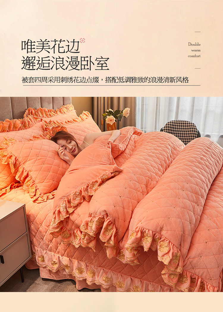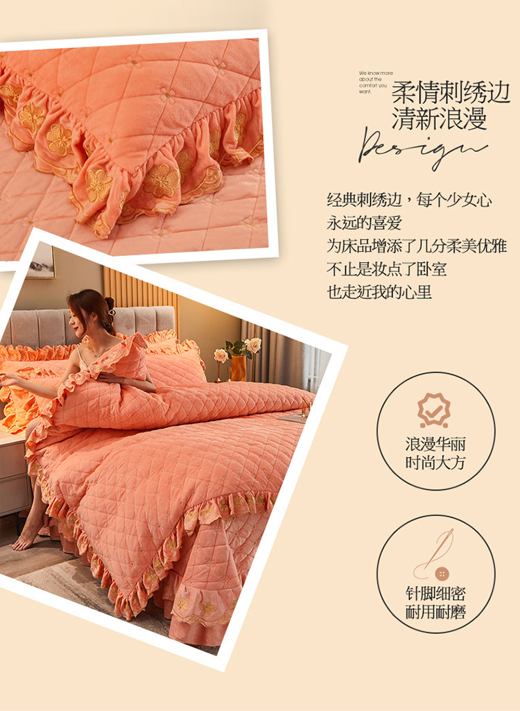 (总)恒爱 2022秋冬水晶绒翩翩花舞夹棉床裙四件套,大红色,豆沙红,橄榄绿,公主粉,桔色,咖啡色,孔雀绿,拉菲红,罗兰紫,玫红色,美人玉,米白色,米驼色,抹茶绿,浅灰色,紫色