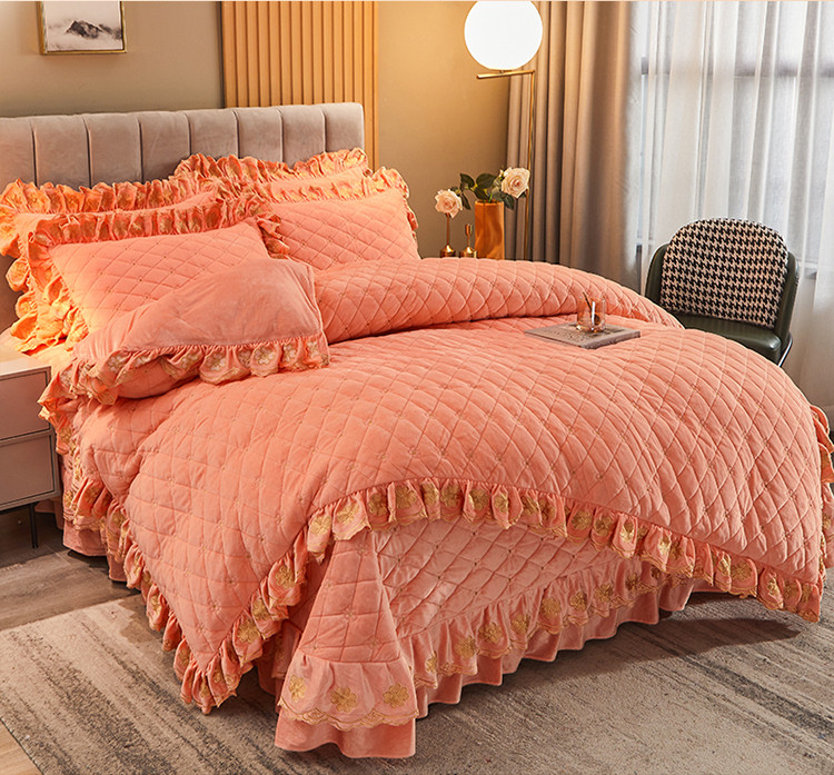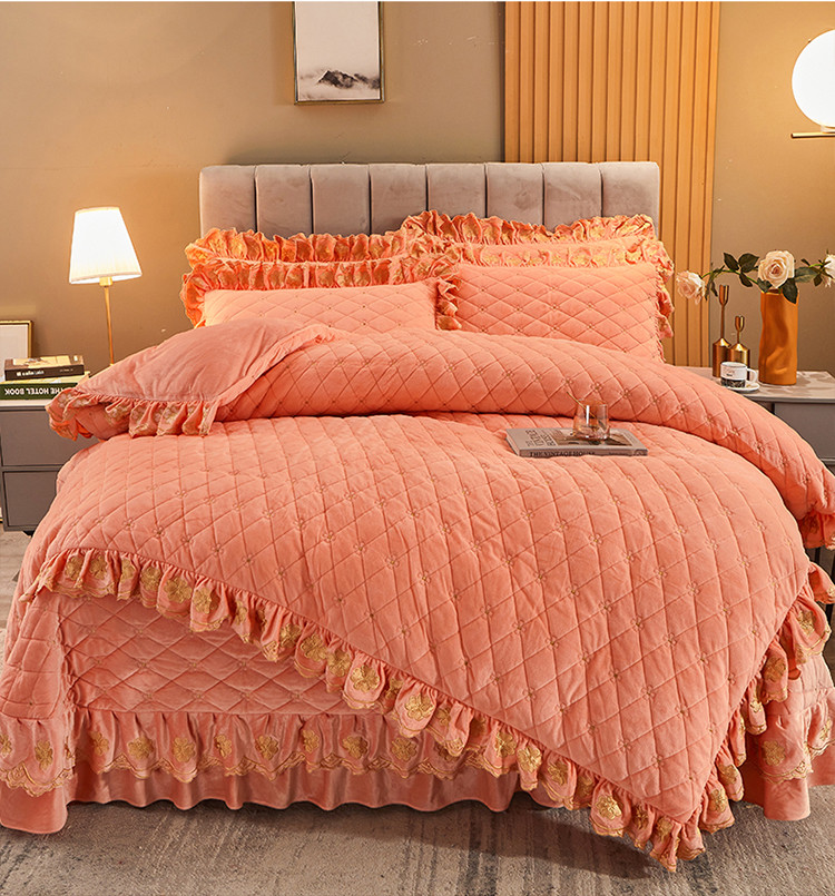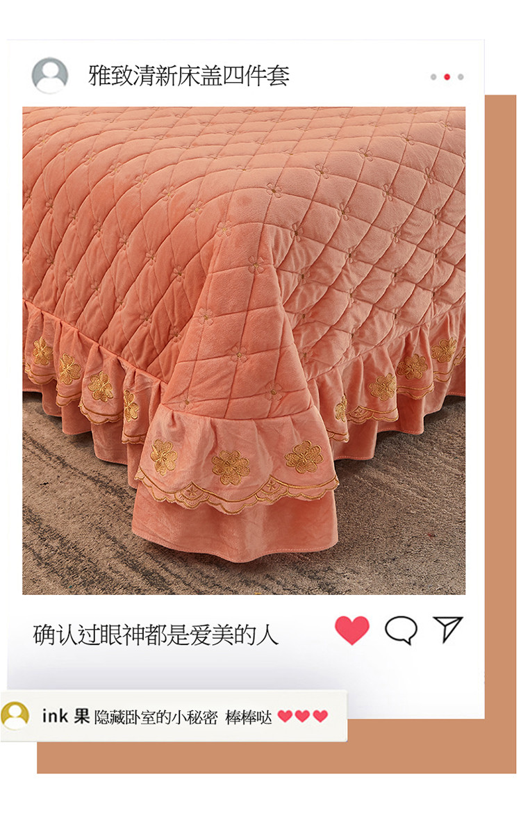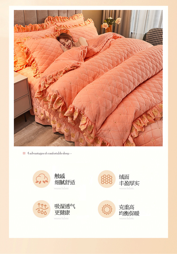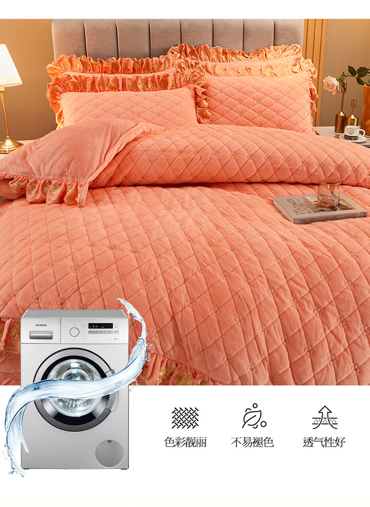 (总)恒爱 2022秋冬水晶绒翩翩花舞夹棉床裙四件套,大红色,豆沙红,橄榄绿,公主粉,桔色,咖啡色,孔雀绿,拉菲红,罗兰紫,玫红色,美人玉,米白色,米驼色,抹茶绿,浅灰色,紫色