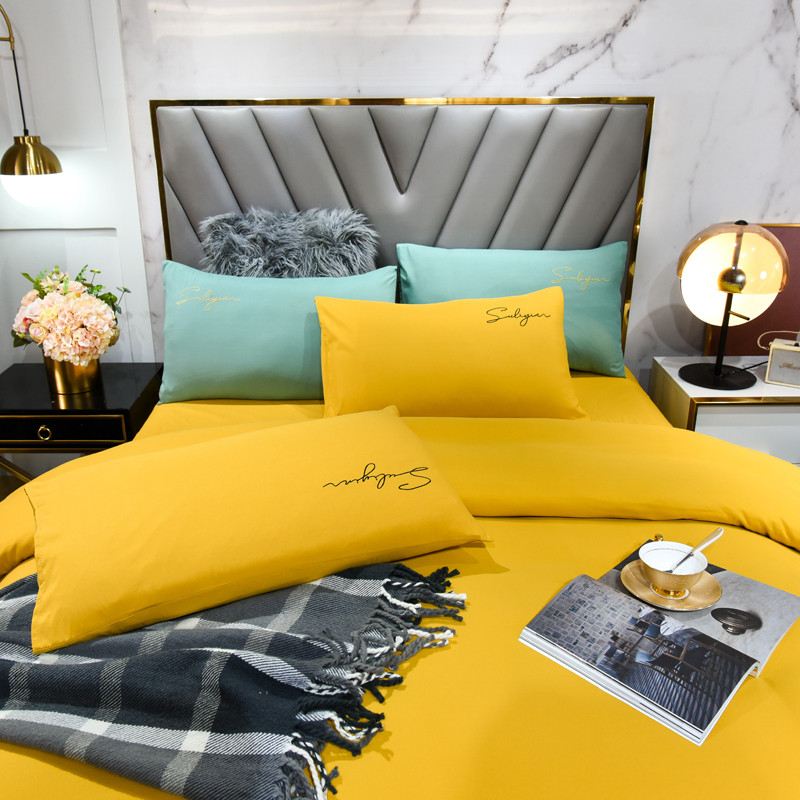 商品名称:孟鑫家纺 2021新款加厚纯色刺绣磨毛四件套 金秋黄