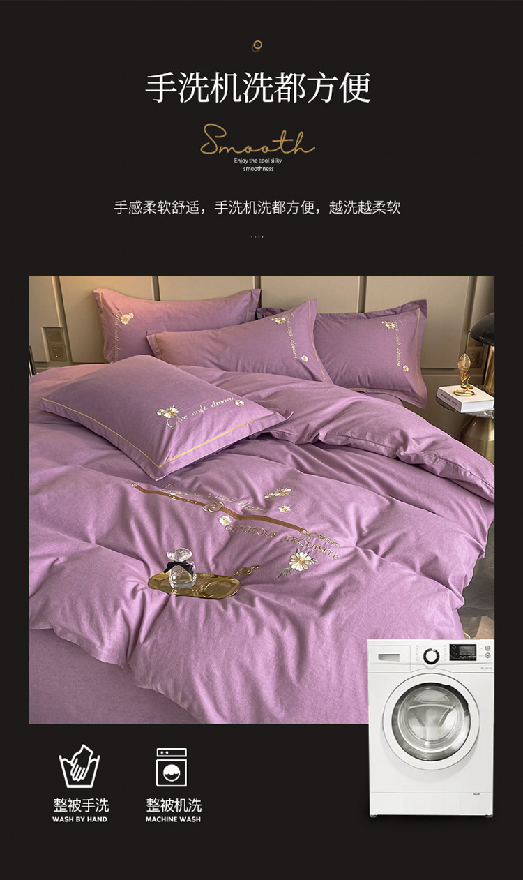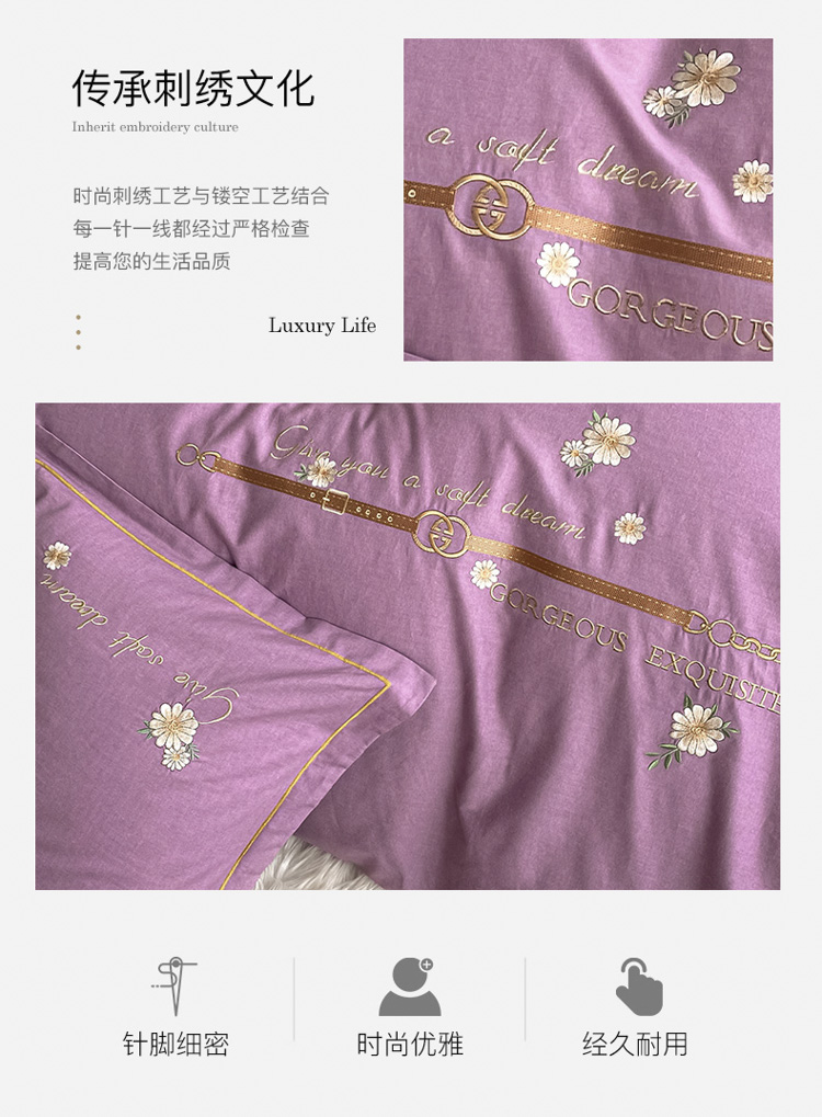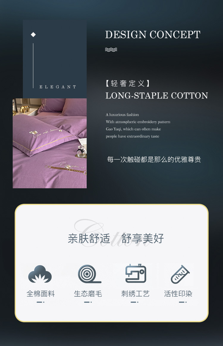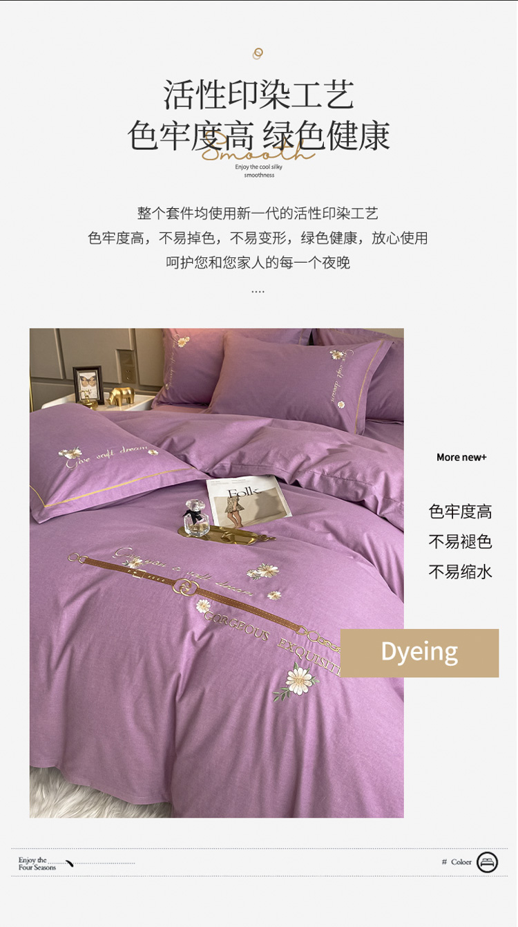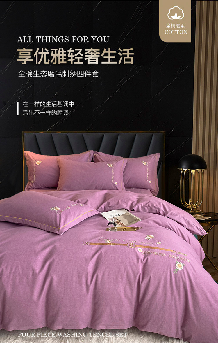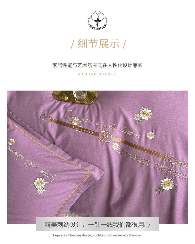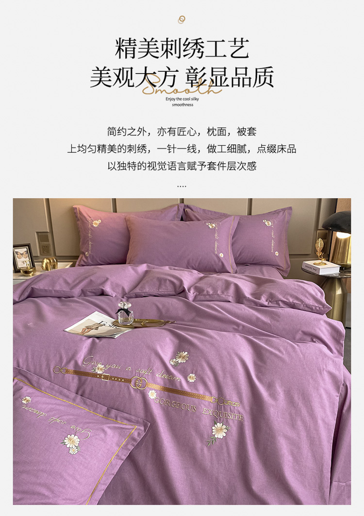 商品名称:雲归梦 2021新款全棉生态磨毛刺绣四件套 慕思-粉紫