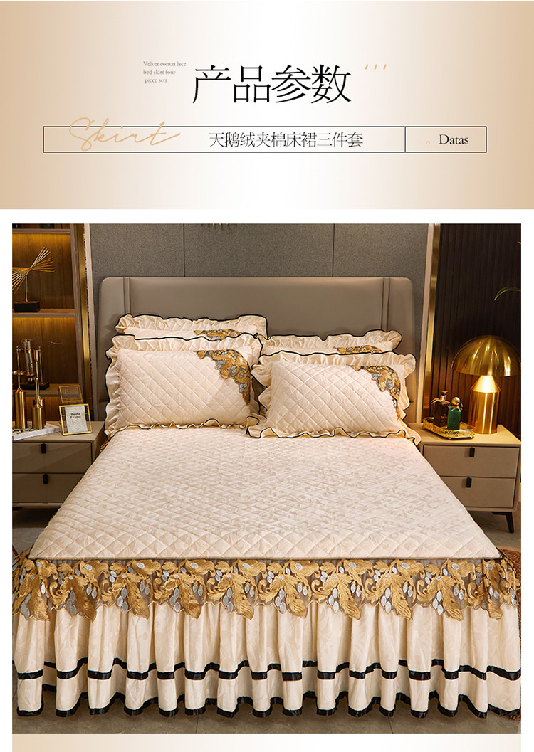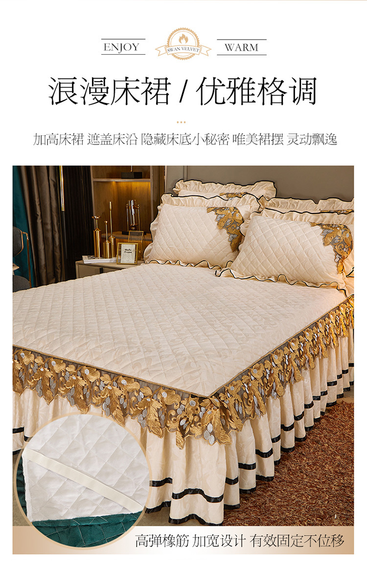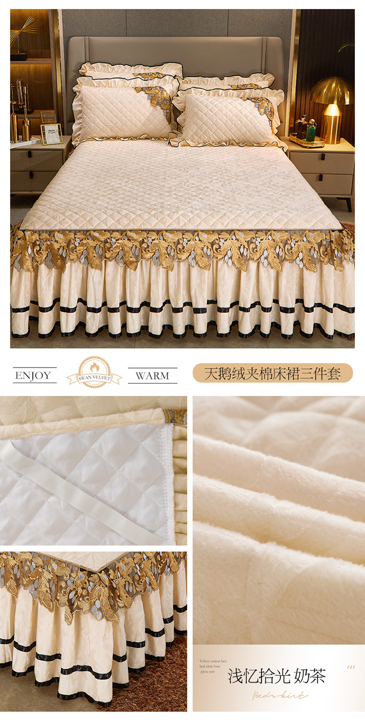 商品名称:网红馆2025新款天鹅绒夹棉单床裙 浅忆拾光-奶茶