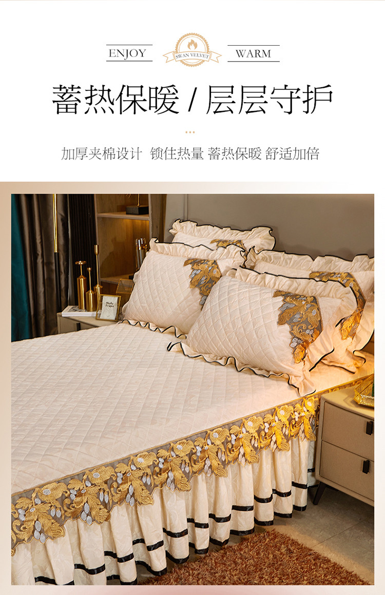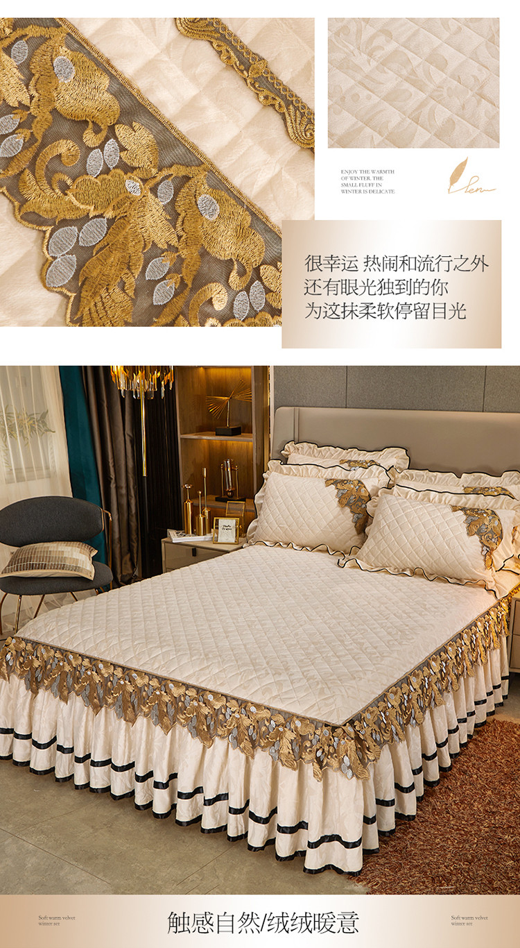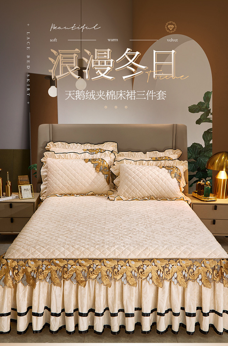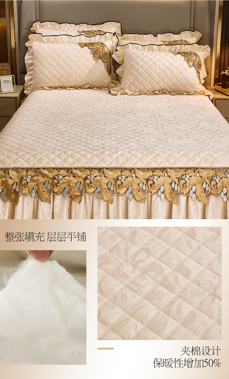 商品名称:网红馆2025新款天鹅绒夹棉单床裙 浅忆拾光-奶茶