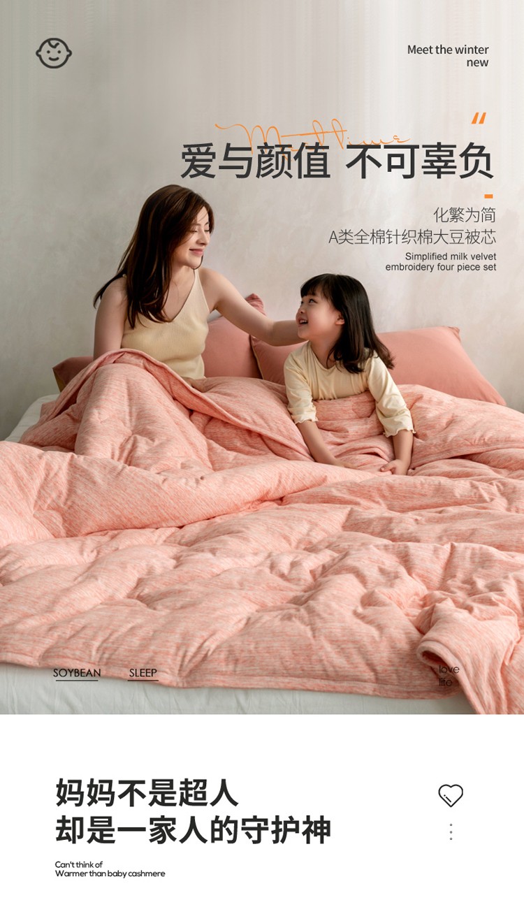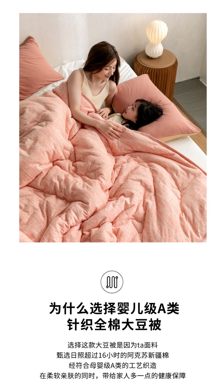 商品名称:风向标 2022新款全棉针织棉大豆秋冬被 段彩粉