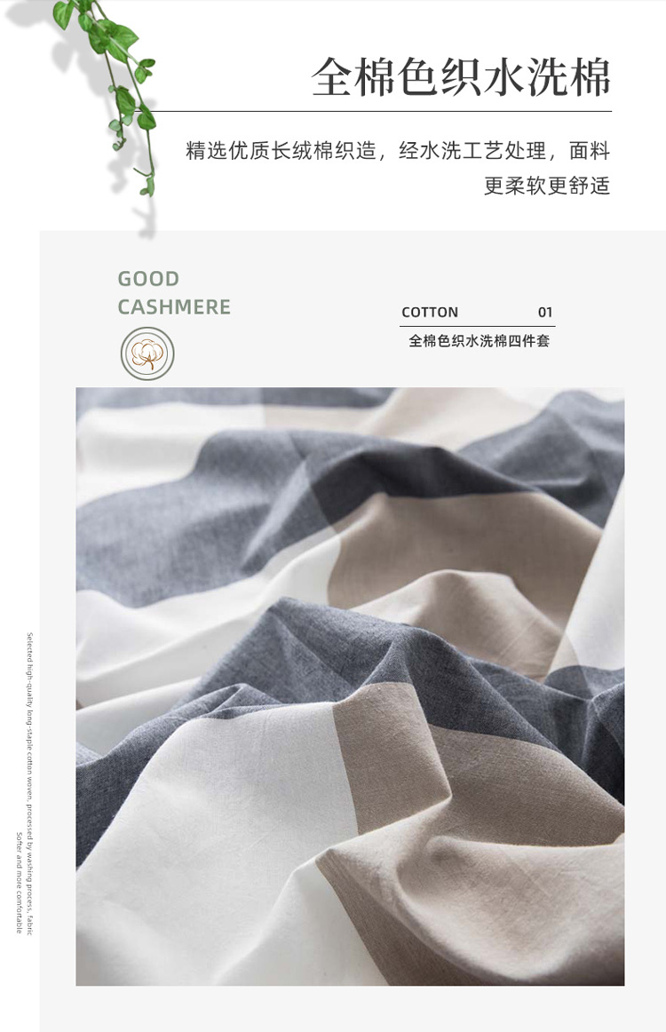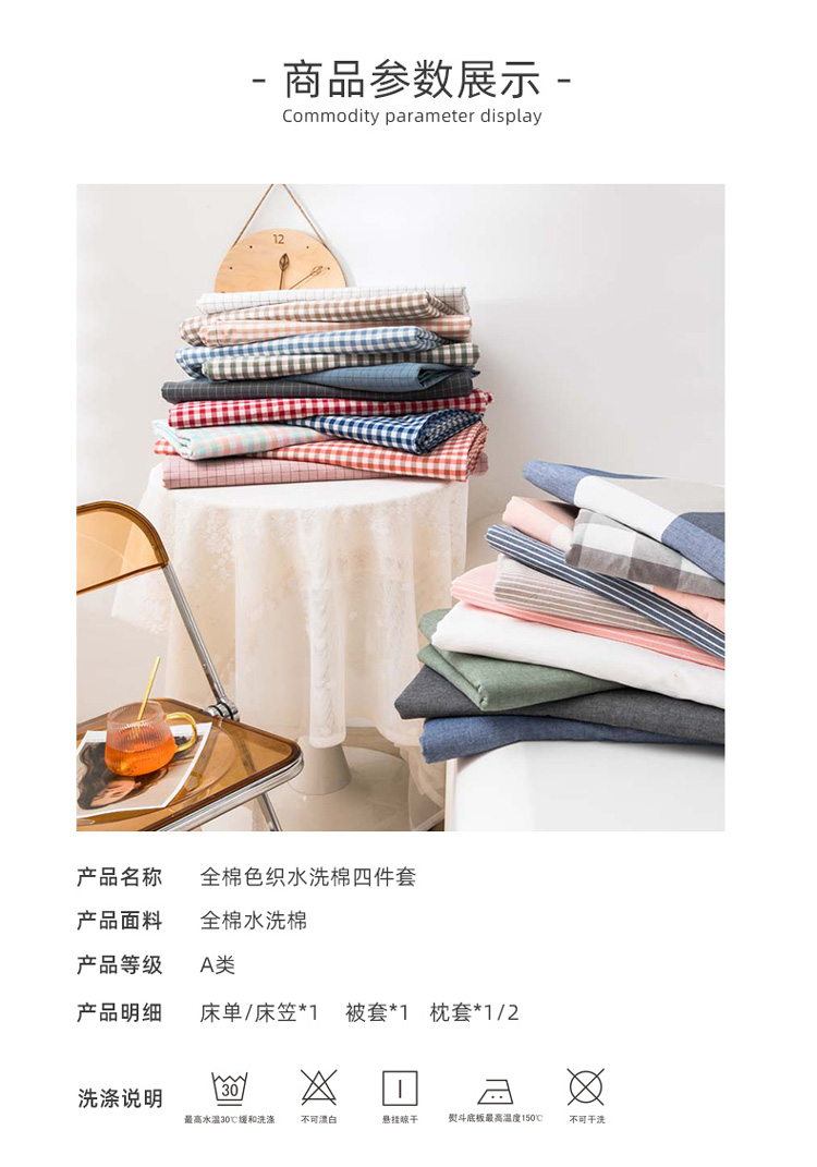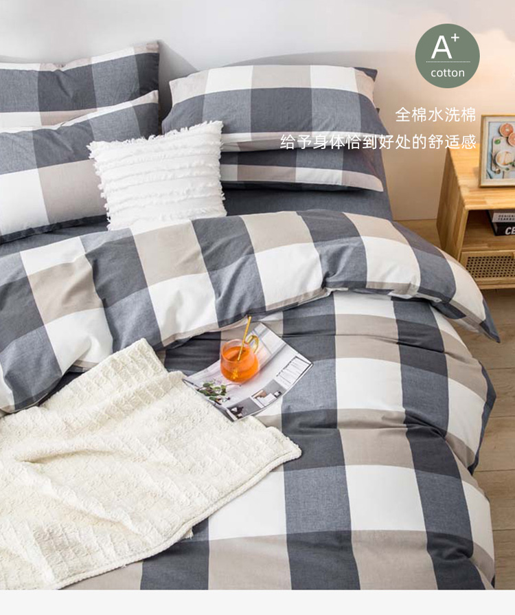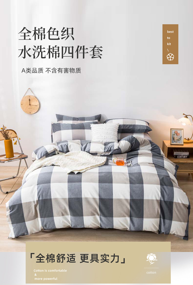 当前位置: 91家纺网 > 商品网购 > 床品套件 > 四件套 > 水洗棉四件套 > 柠萌家居 2021新款全棉色织水洗棉床品四件套 蓝大格