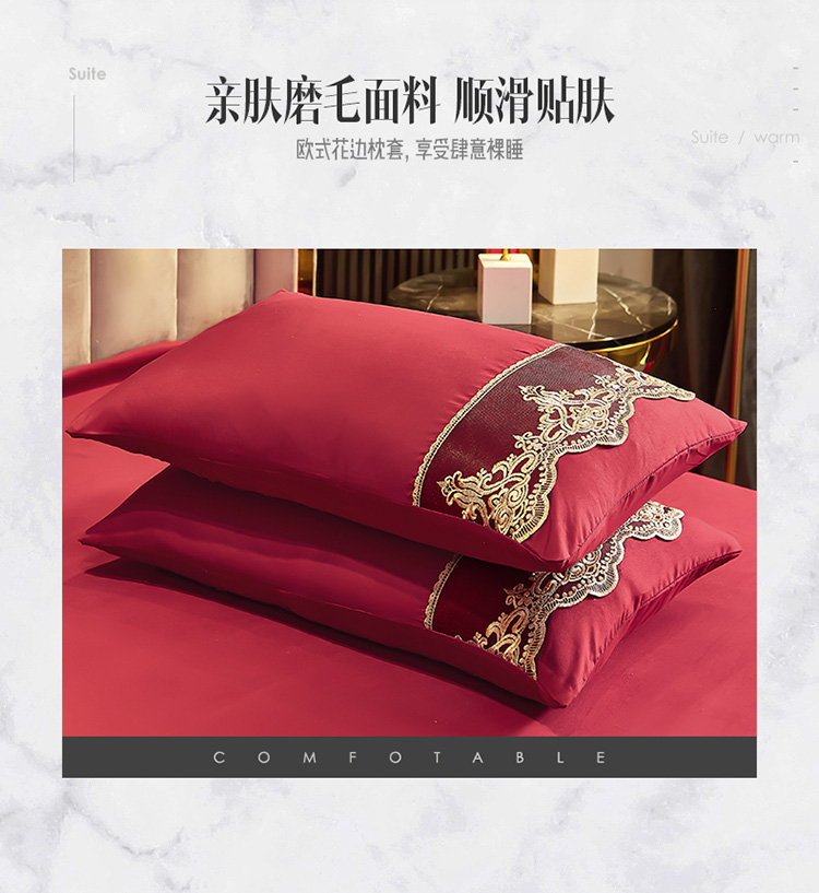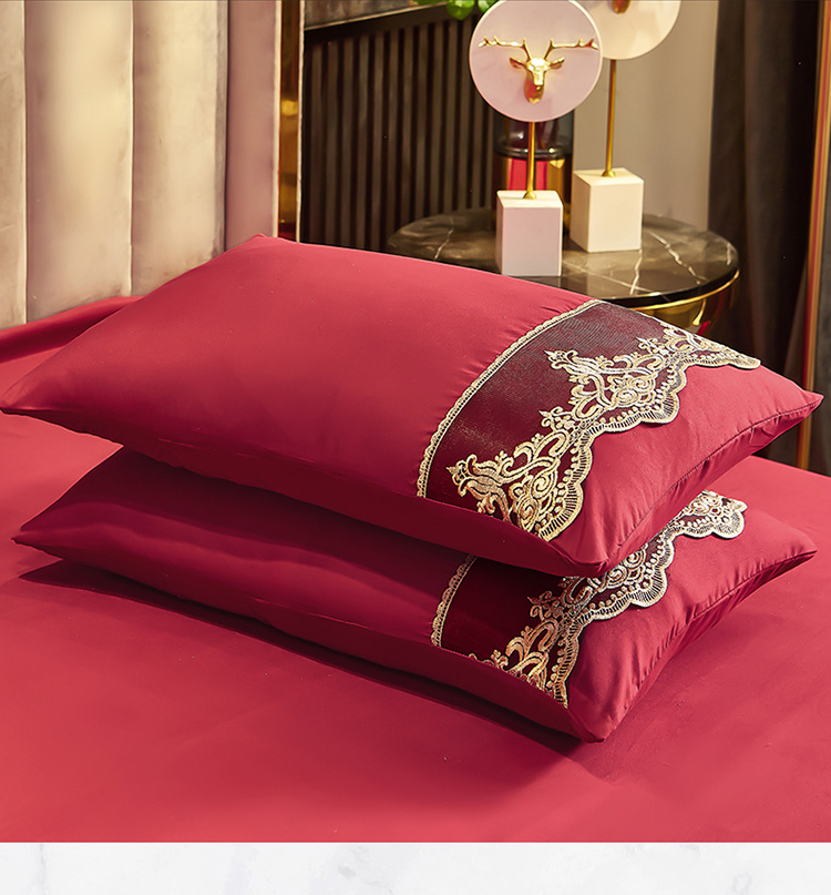 商品名称:莉莉安家纺2025新款莫娜系列-欧式花边枕套 莫娜-胭脂红