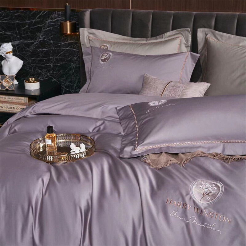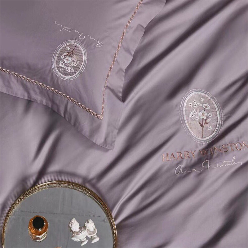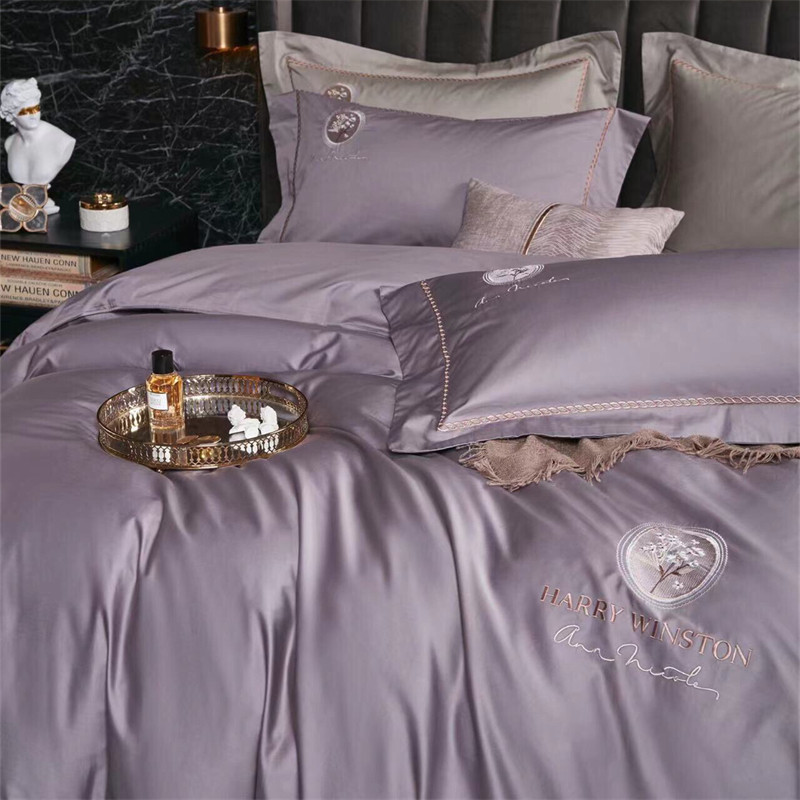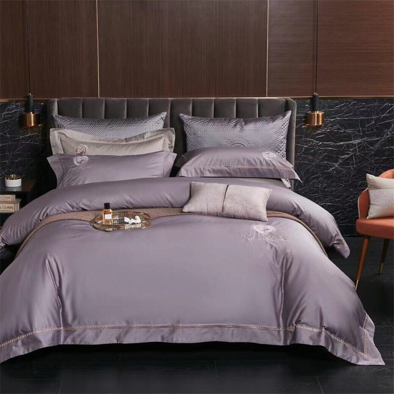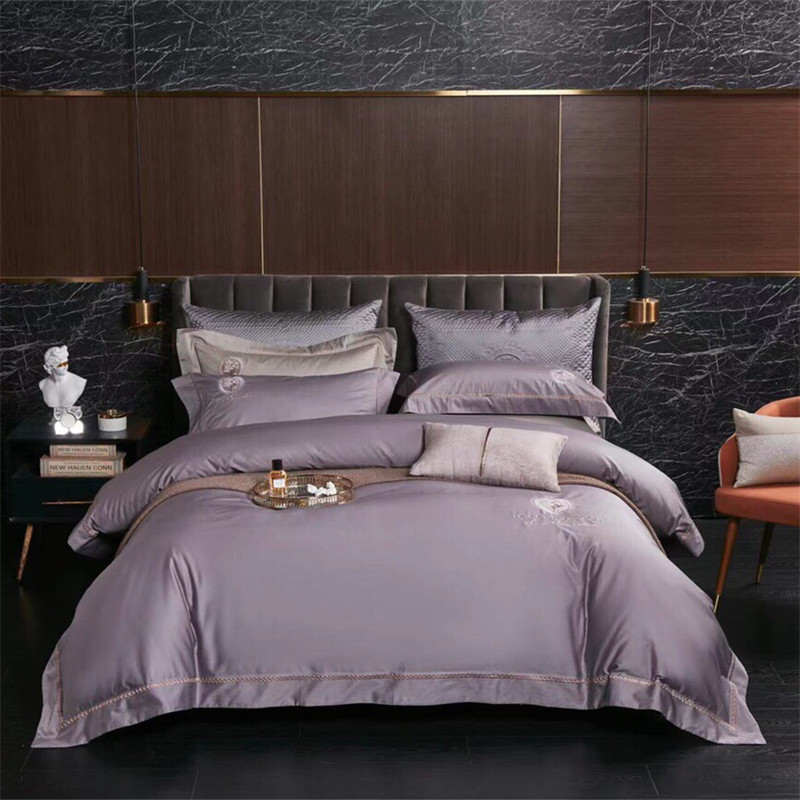 玖玖爱家纺 2022新款120支长绒棉全棉贡缎绣花四件套 灰紫