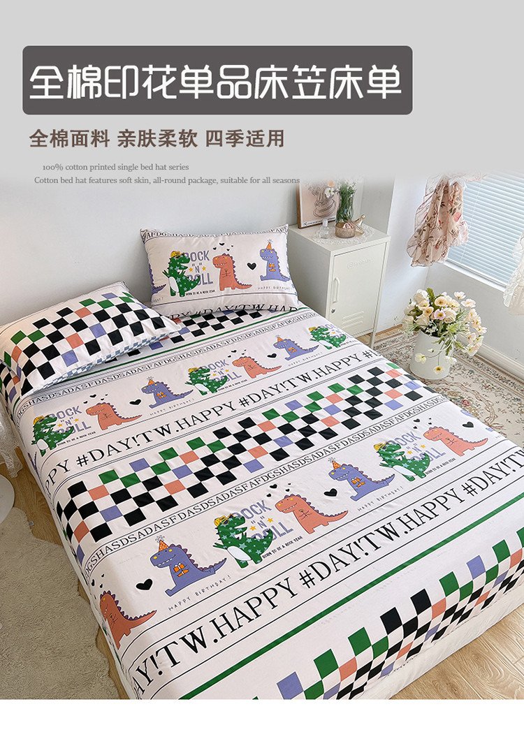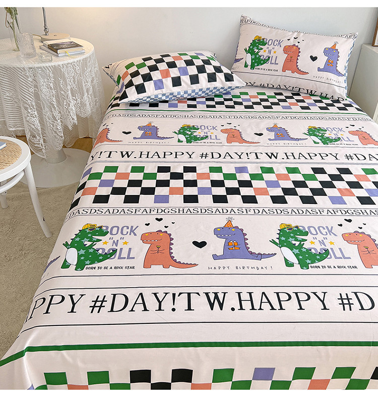麦伦2022新款全棉斜纹印花休闲轻奢单品床单 棋盘恐龙