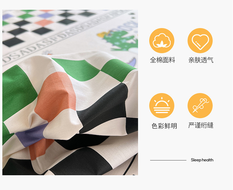商品名称:麦伦2022新款全棉斜纹印花休闲轻奢单品床单 棋盘恐龙