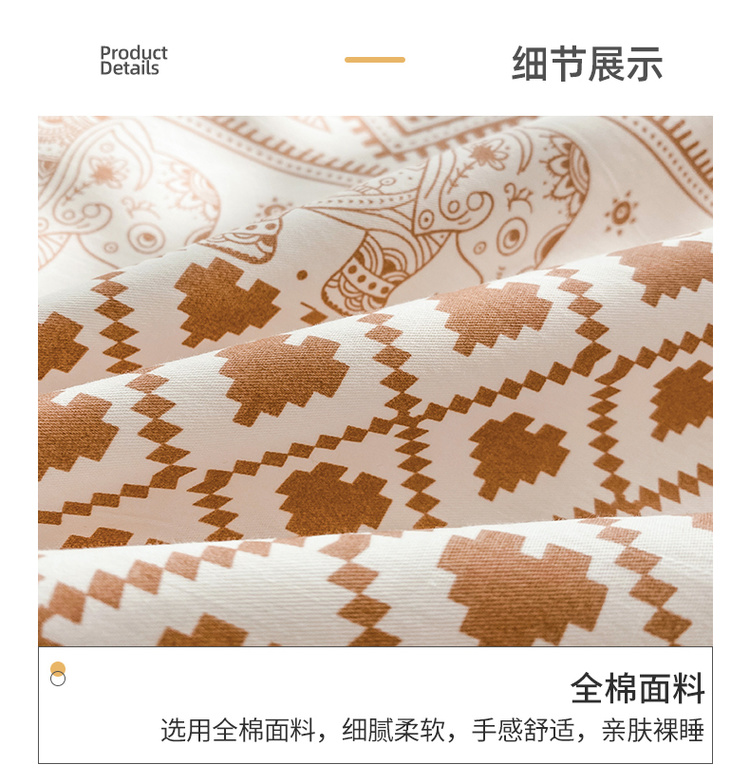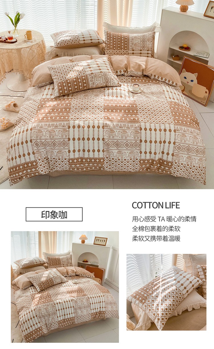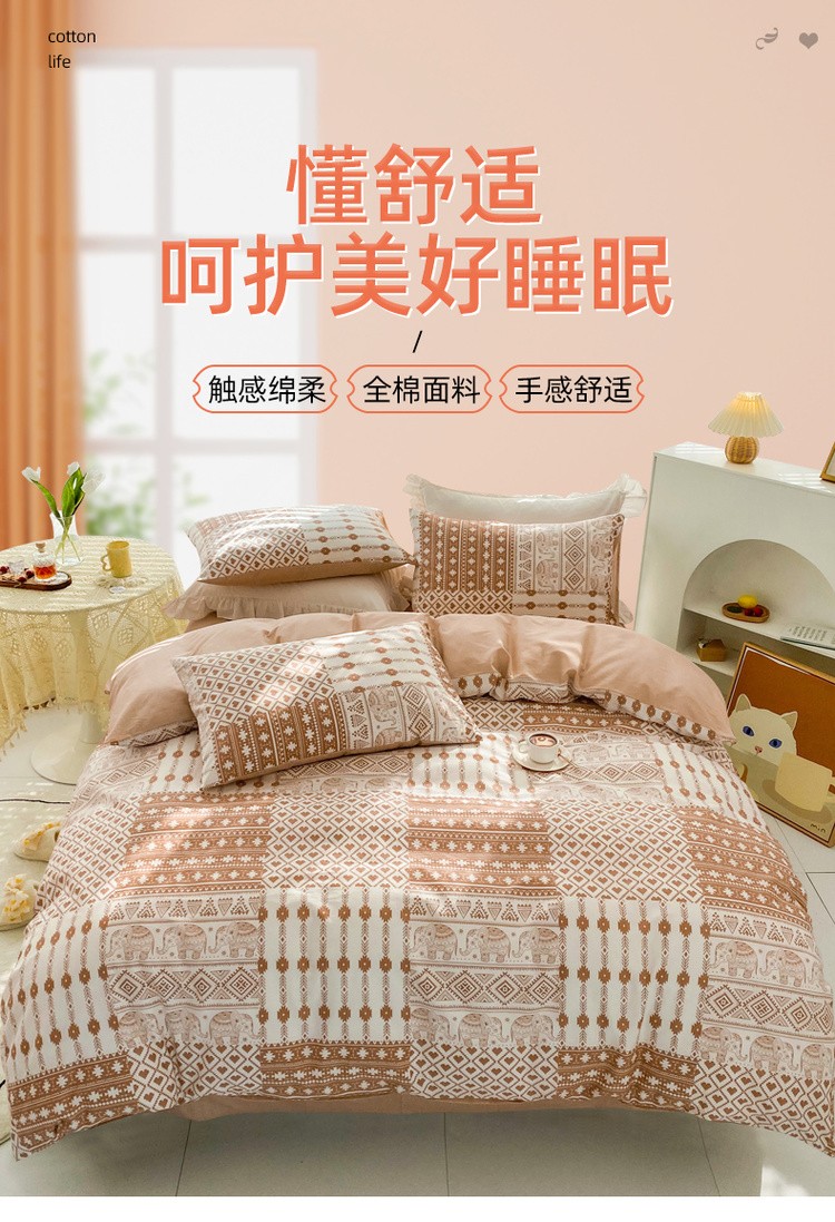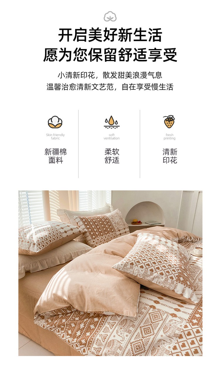商品名称:优彩2022新款全棉13372印花四件套 印象咖
