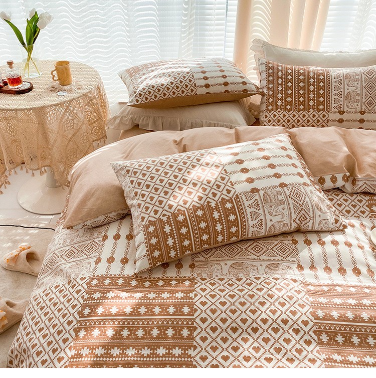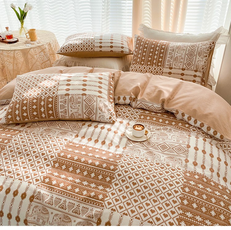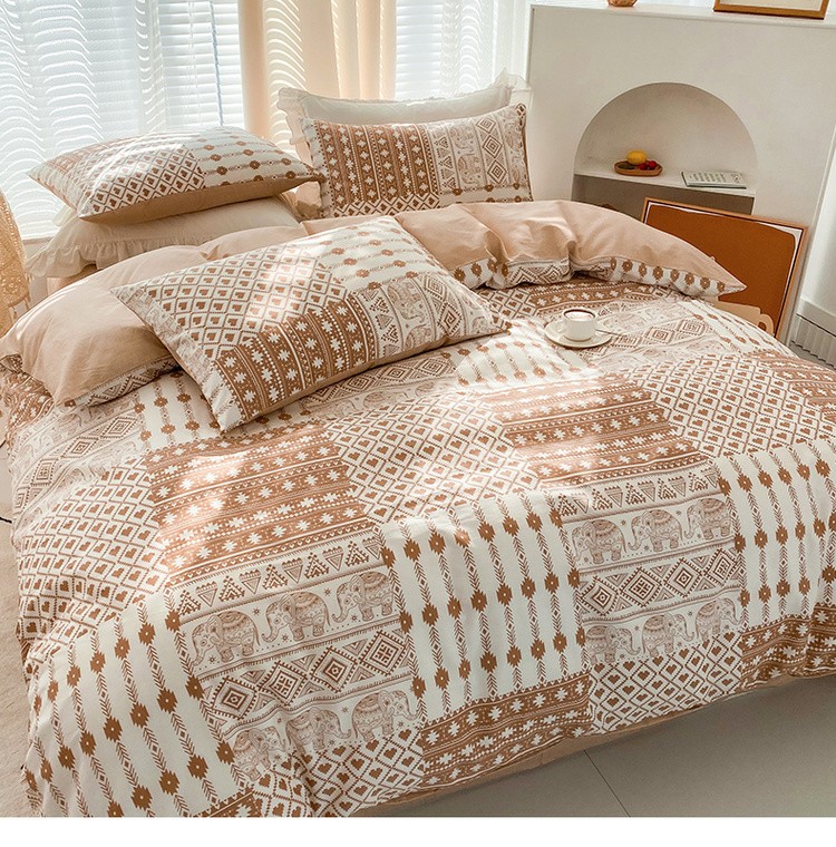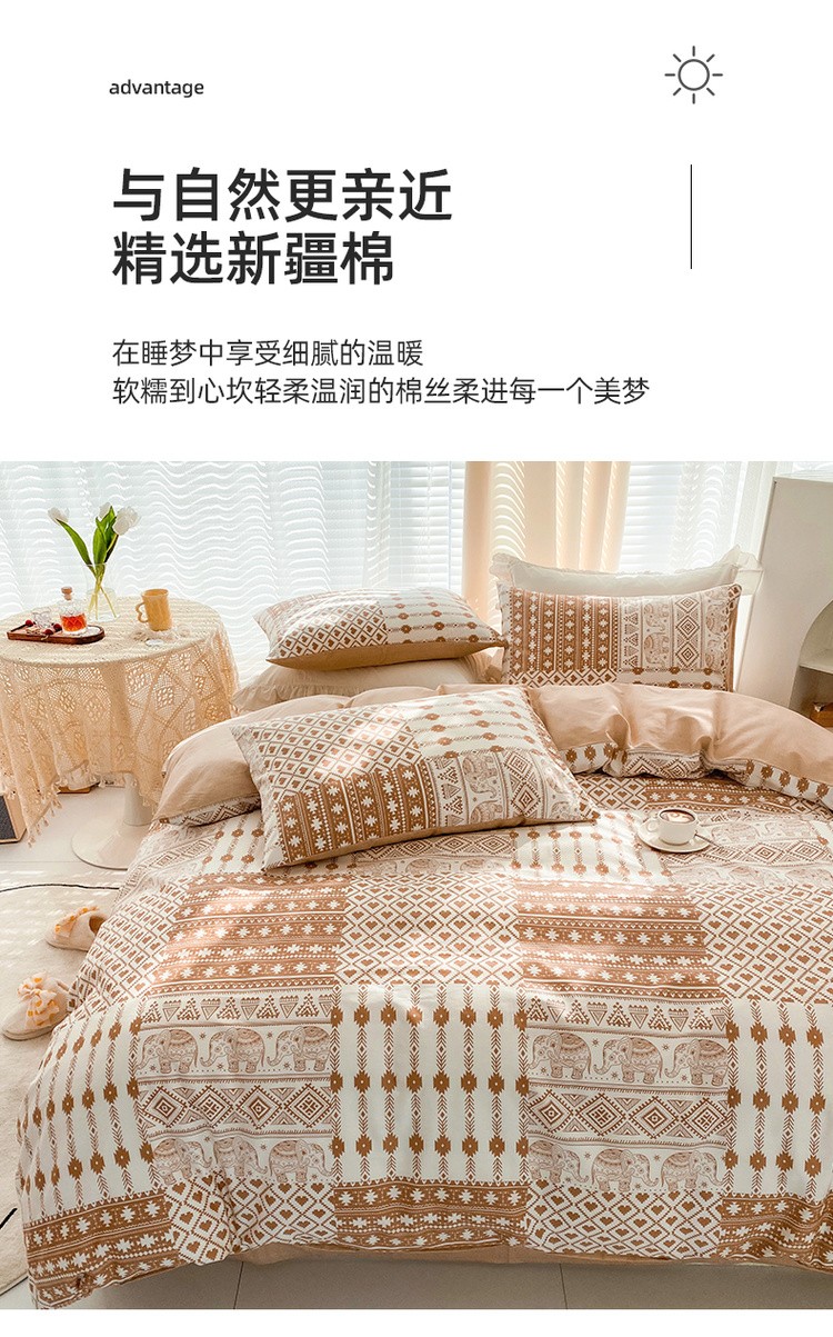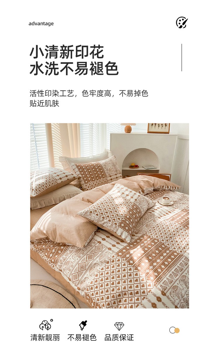 商品名称:优彩2022新款全棉13372印花四件套 印象咖