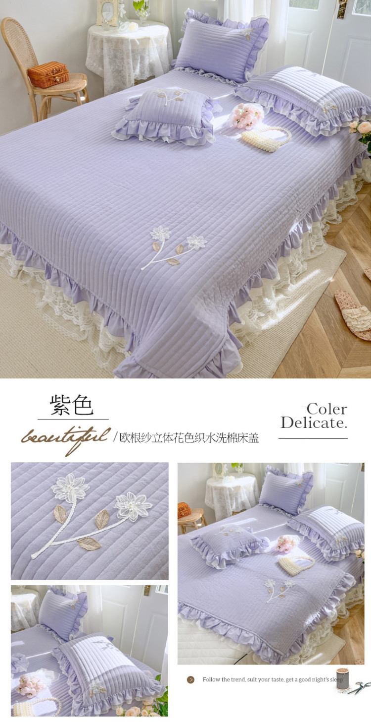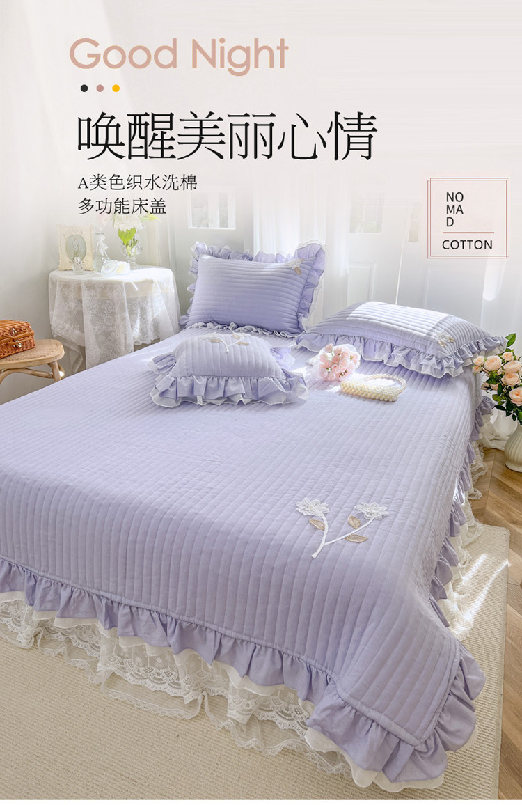 菊上家纺 2022新款手工花色织水洗棉多功能床盖 紫