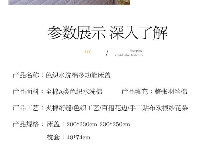 商品名称:菊上家纺 2022新款手工花色织水洗棉多功能床盖 紫