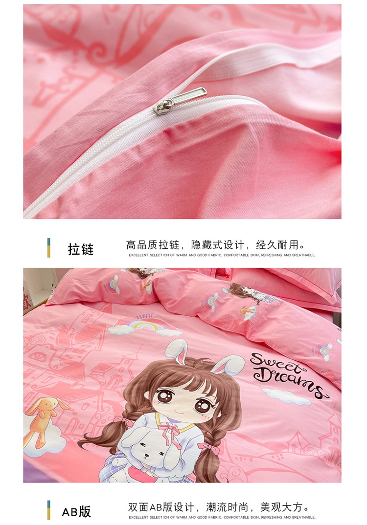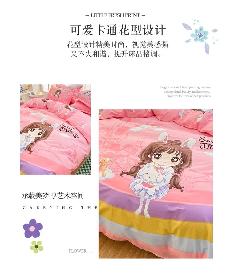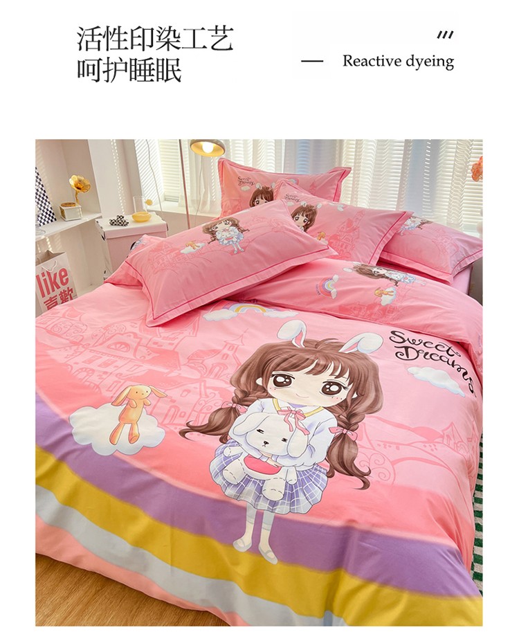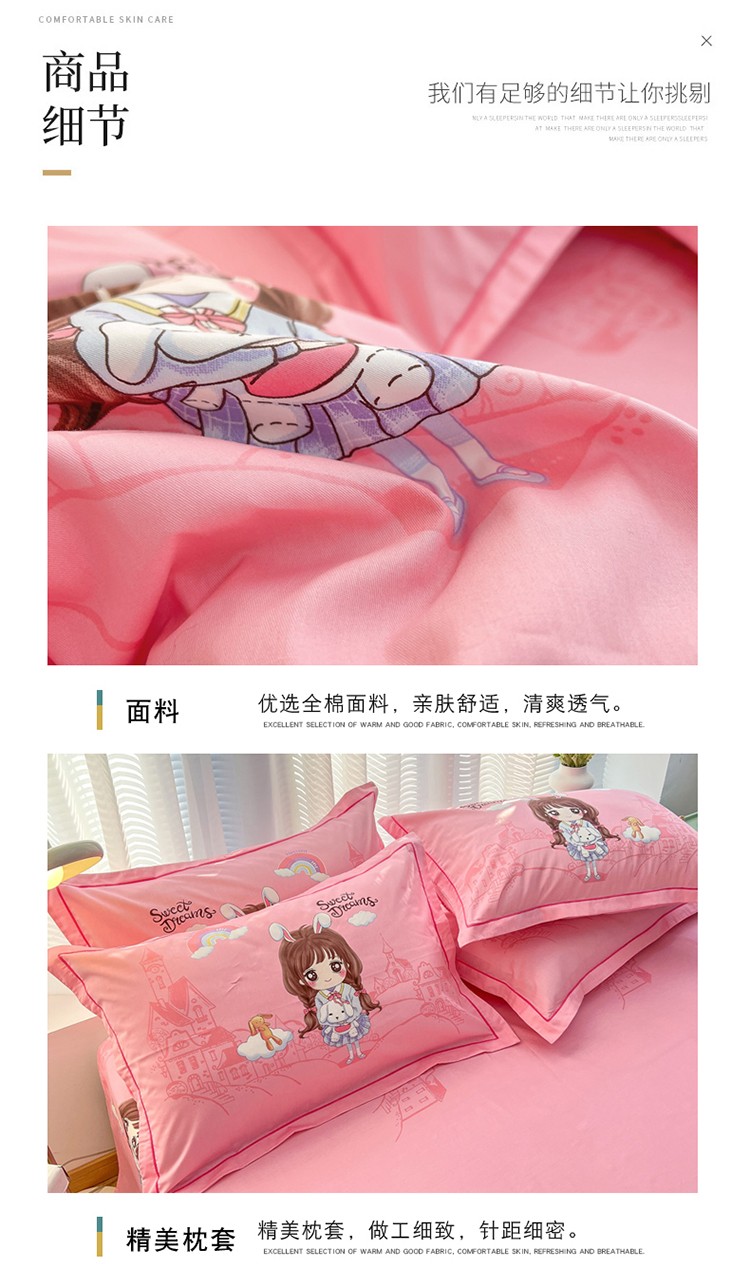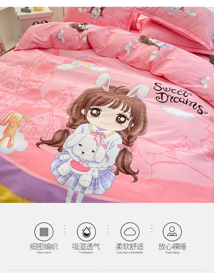 当前位置: 91家纺网 > 商品网购 > 床品套件 > 四件套 > 全棉普通四件套 > 金爱家 2023新款大版纯棉卡通四件套 彩虹女孩-粉