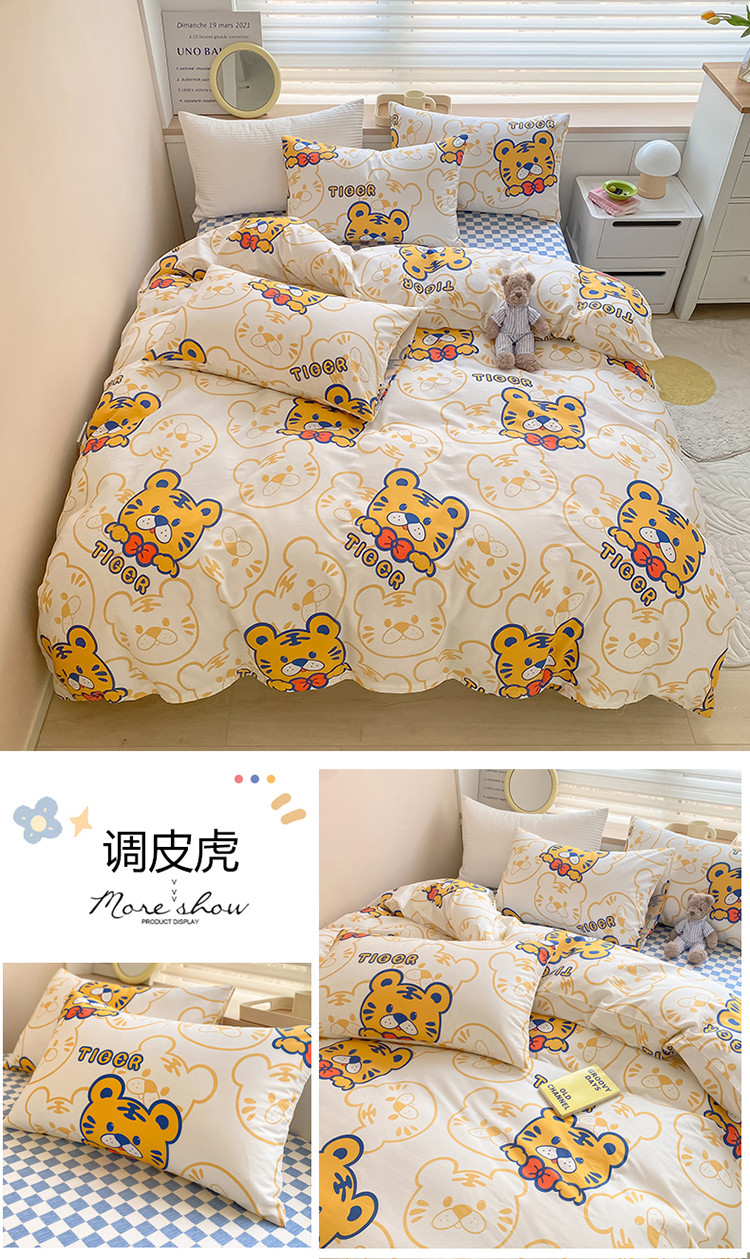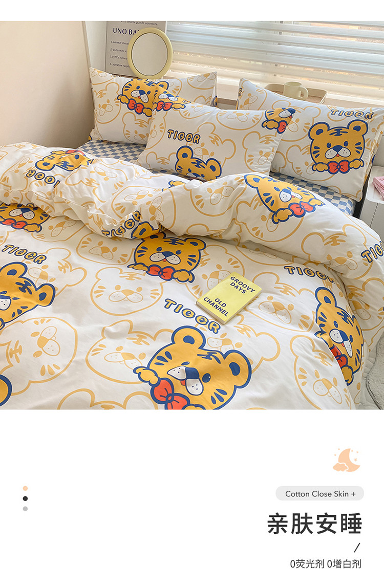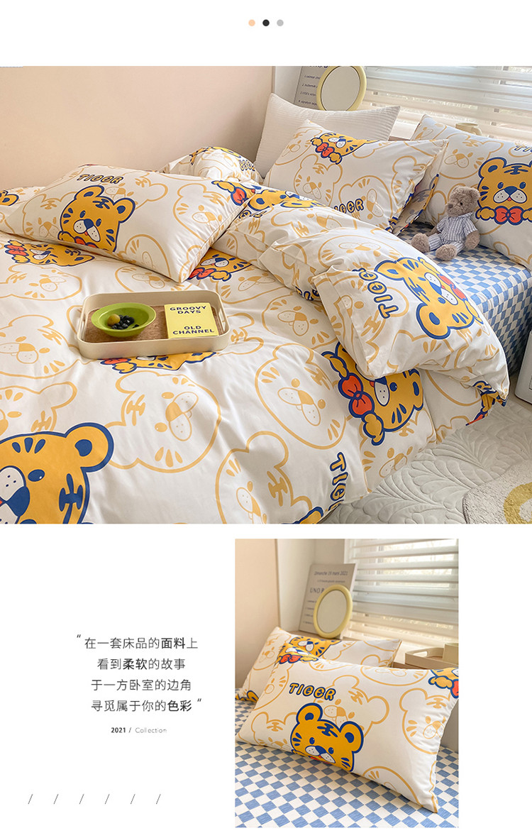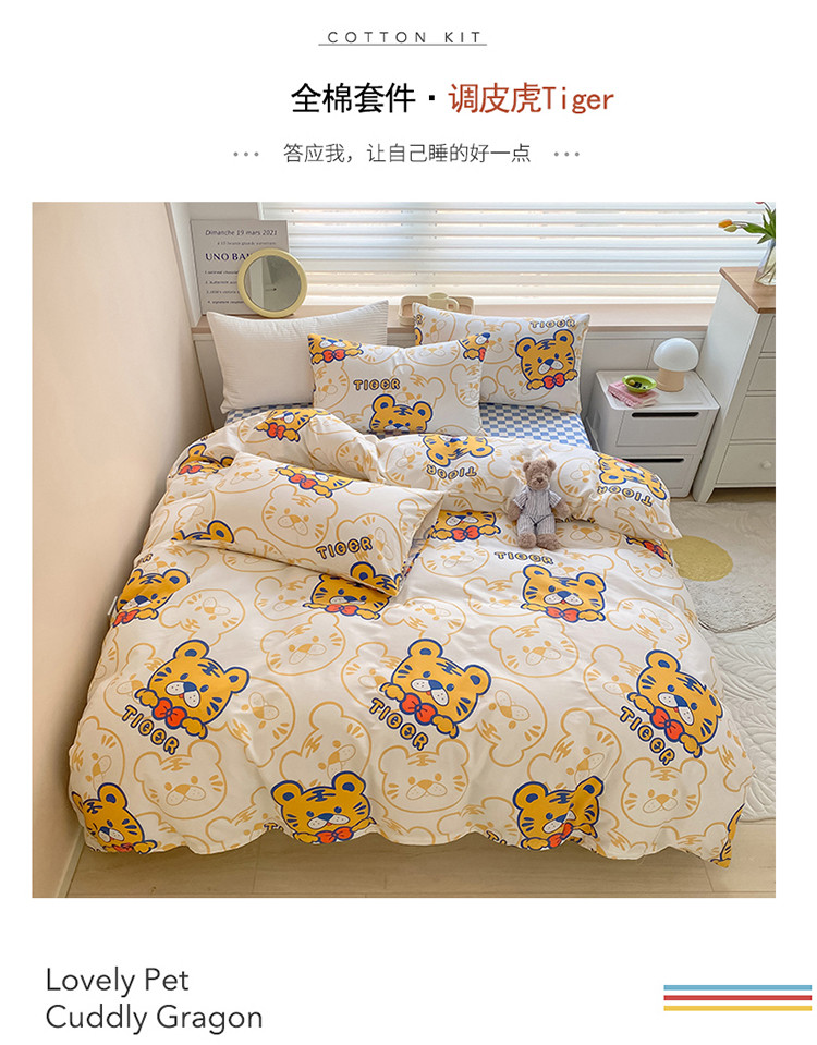 当前位置: 91家纺网 > 商品网购 > 床品套件 > 四件套 > 全棉普通四件套 > 麦伦家居 2022新款小清新卡通系列全棉斜纹四件套 调皮虎tiger