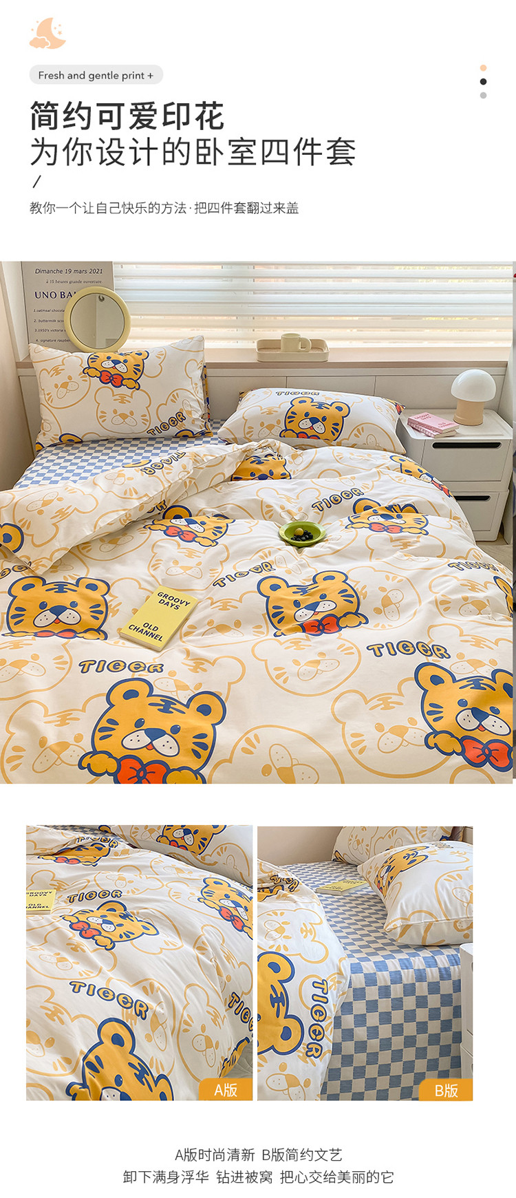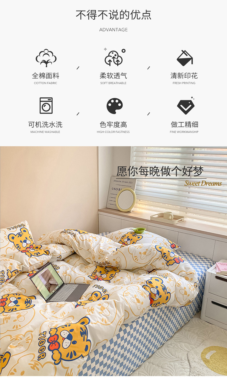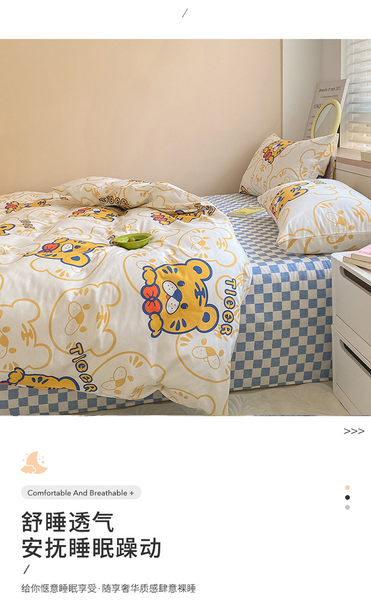 当前位置: 91家纺网 > 商品网购 > 床品套件 > 四件套 > 全棉普通四件套 > 麦伦家居 2022新款小清新卡通系列全棉斜纹四件套 调皮虎tiger