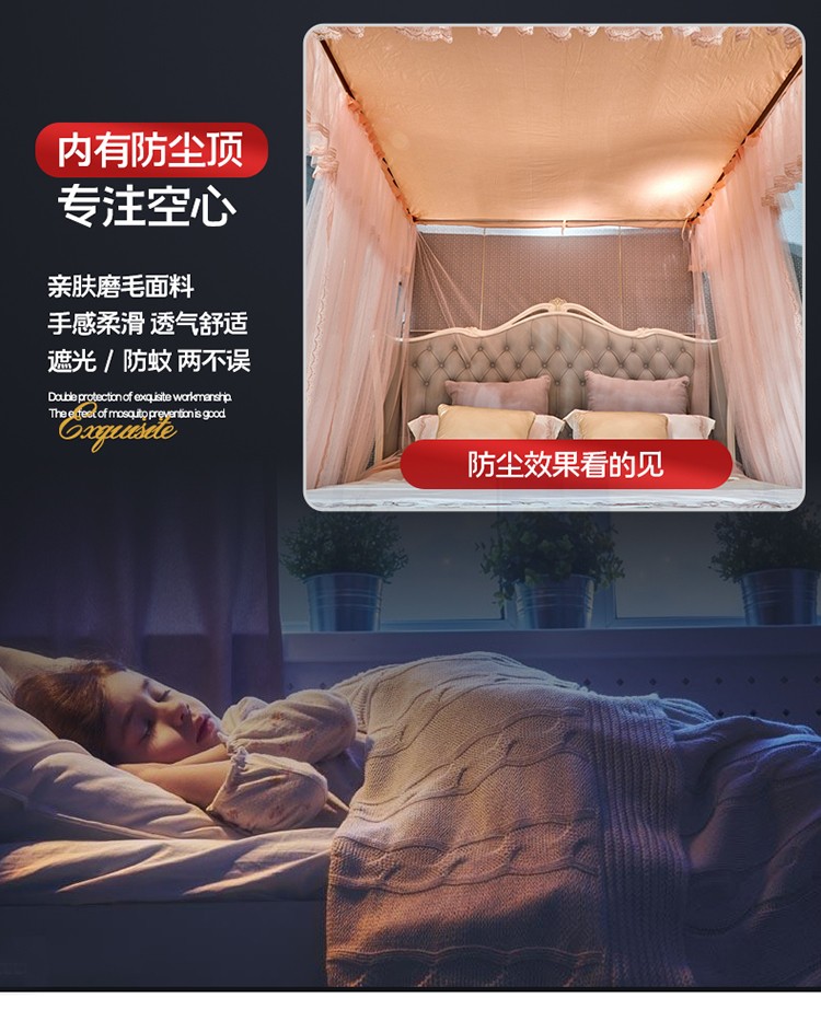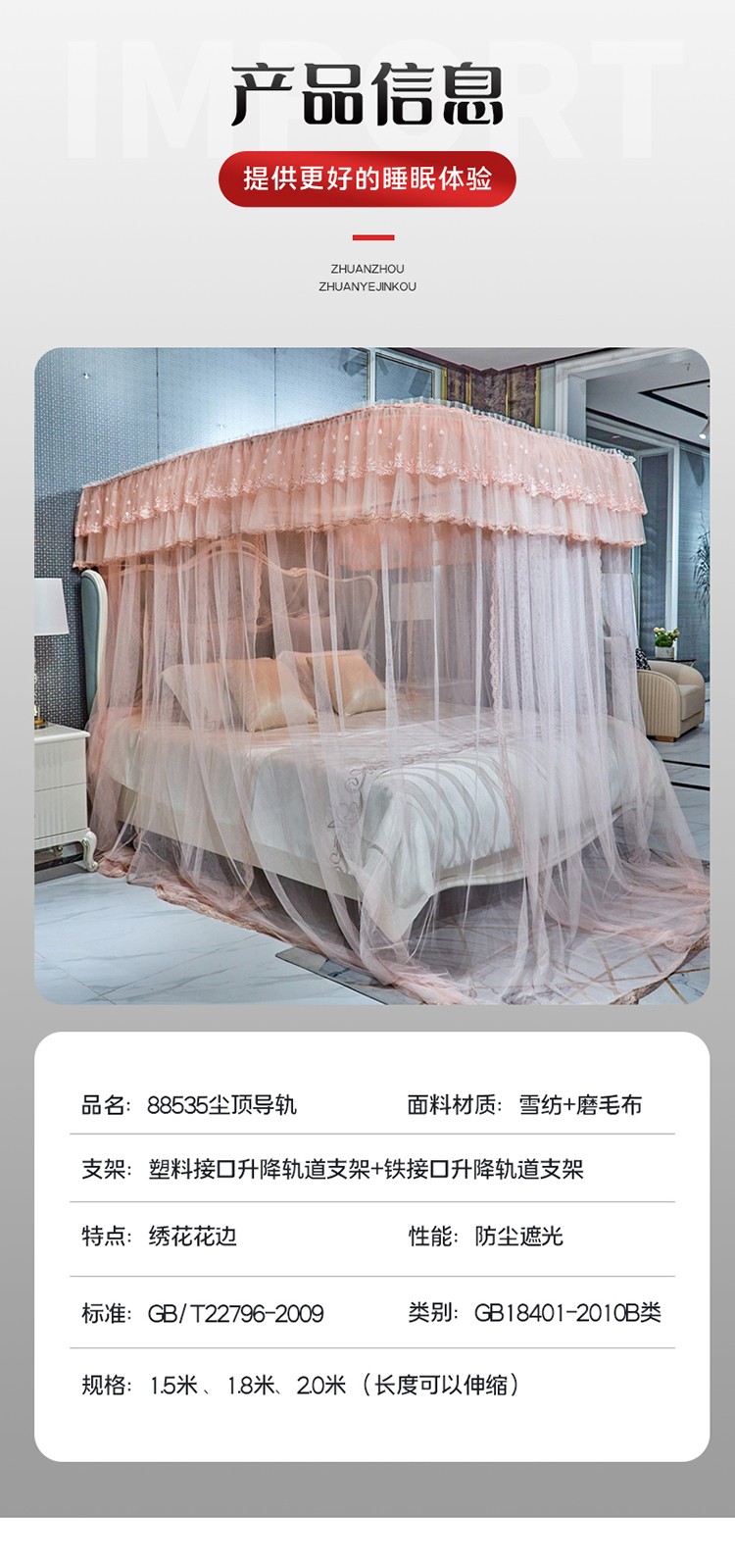 当前位置: 91家纺网 > 商品网购 > 床上用品 > 蚊帐 > 导轨蚊帐 > 夏彩新款防尘遮光顶加密加厚防蚊轨道睡帐88535玉色